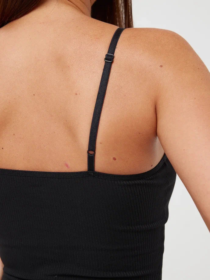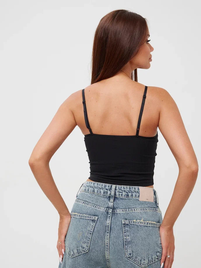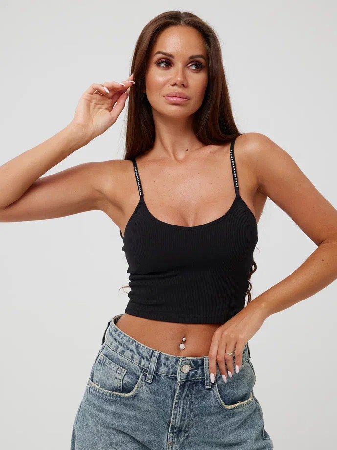 Женский топ Kota на тонких регулируемых бретельках, которые украшены стразами. Изделие с вкладками. Топ изготовлен из 93% полиэстера и 7% эластана.