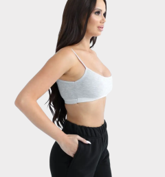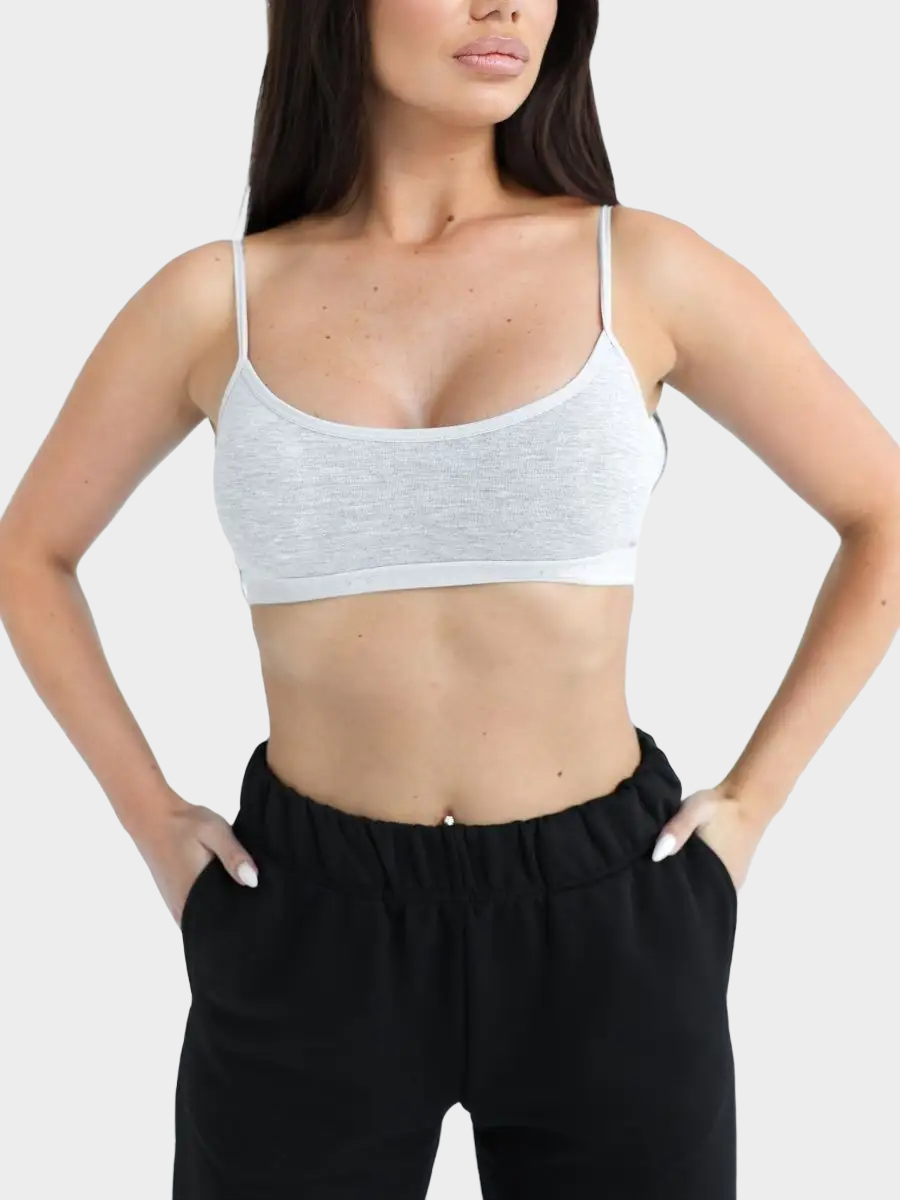 Спортивный топ Kota серого цвета на тонких бретелях и с пушап чашечками.
