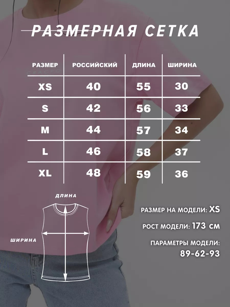 Модель носит размер XS. Пожалуйста, сверьтесь с таблицей размеров, представленной в разделе "ФОТО", чтобы подобрать идеальный вариант для себя.