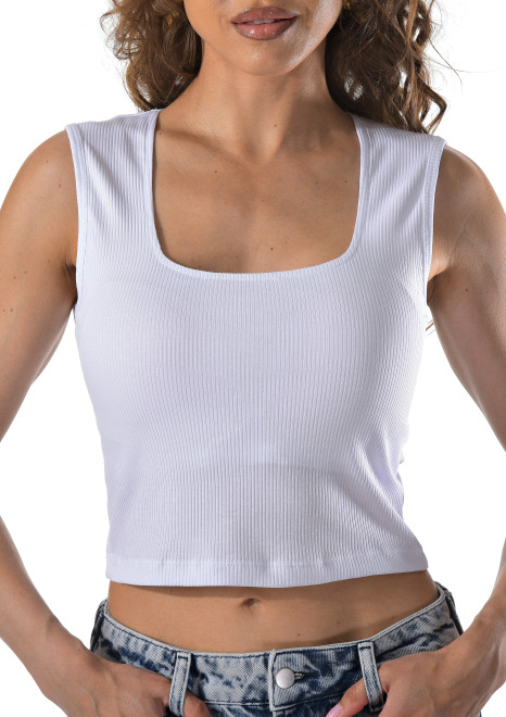 Женский топ Kota из хлопка с круглым вырезом в рубчик.