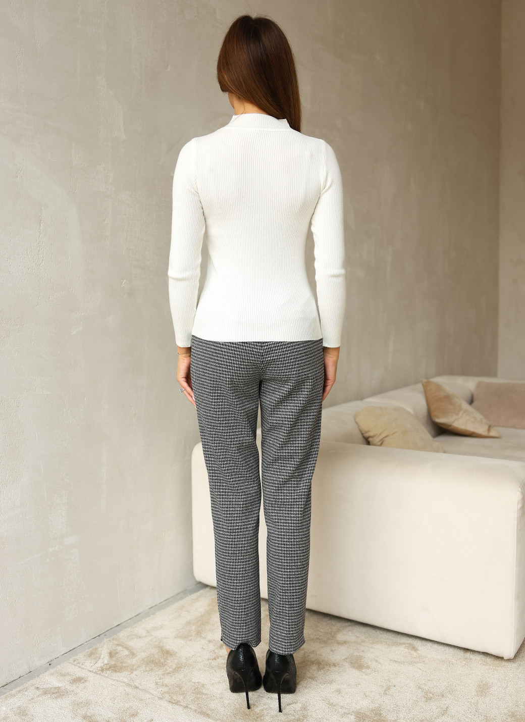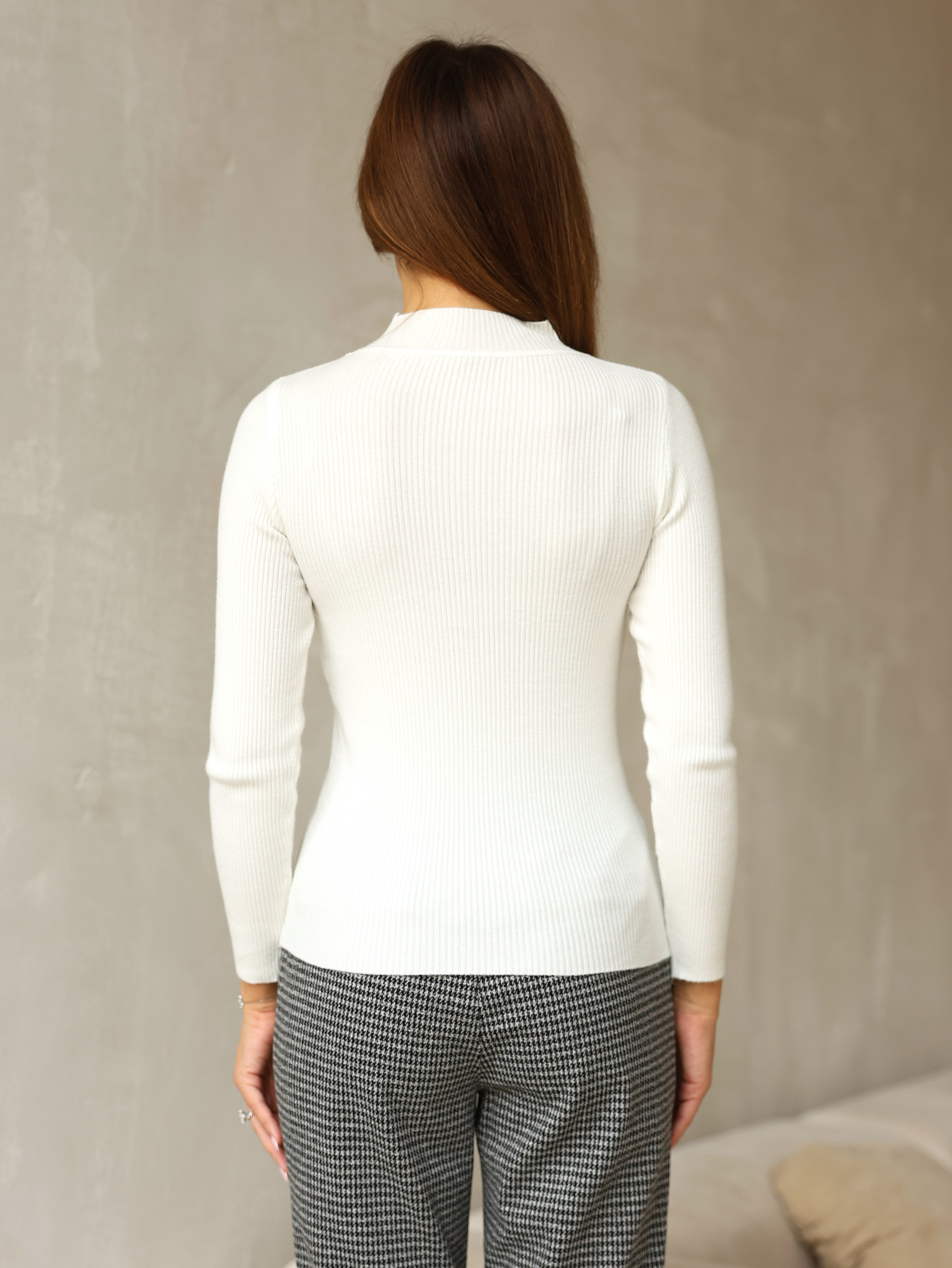 Эта водолазка удобна и многофункциональна. Её можно носить как отдельный элемент одежды, например, с джинсами или юбками, либо дополнить сверху жакетом, свитером или пиджаком, создавая уникальные образы