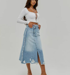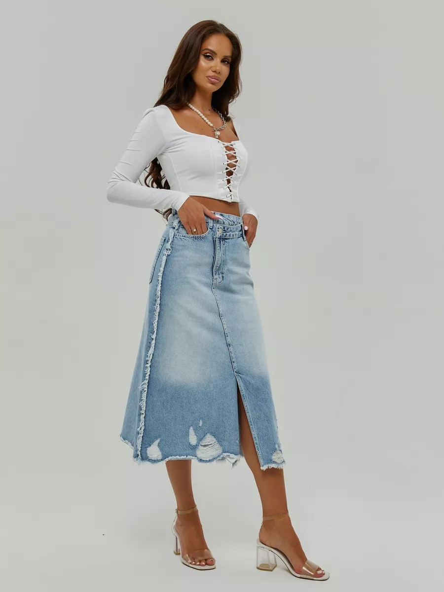 Представляем революционную джинсовую юбку макси от бренда CRACPOT – ваш незаменимый элемент гардероба, который мгновенно выделит вас из толпы и станет основой вашего безупречного стиля.