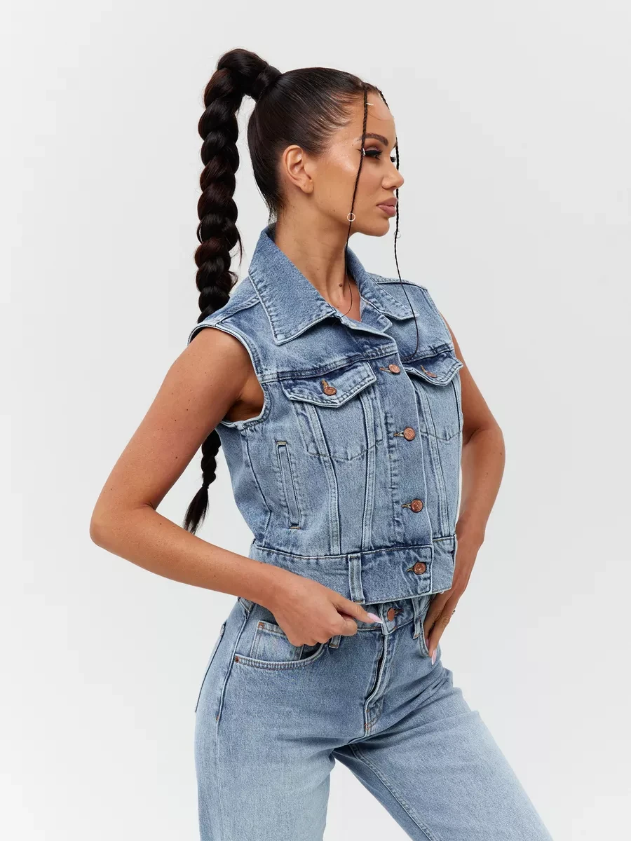 Молодежный жилет выполнен из качественного денима, который прекрасно сочетается с любым нарядом, создавая стильный образ. Это отличный вариант для весны, осени и лета.