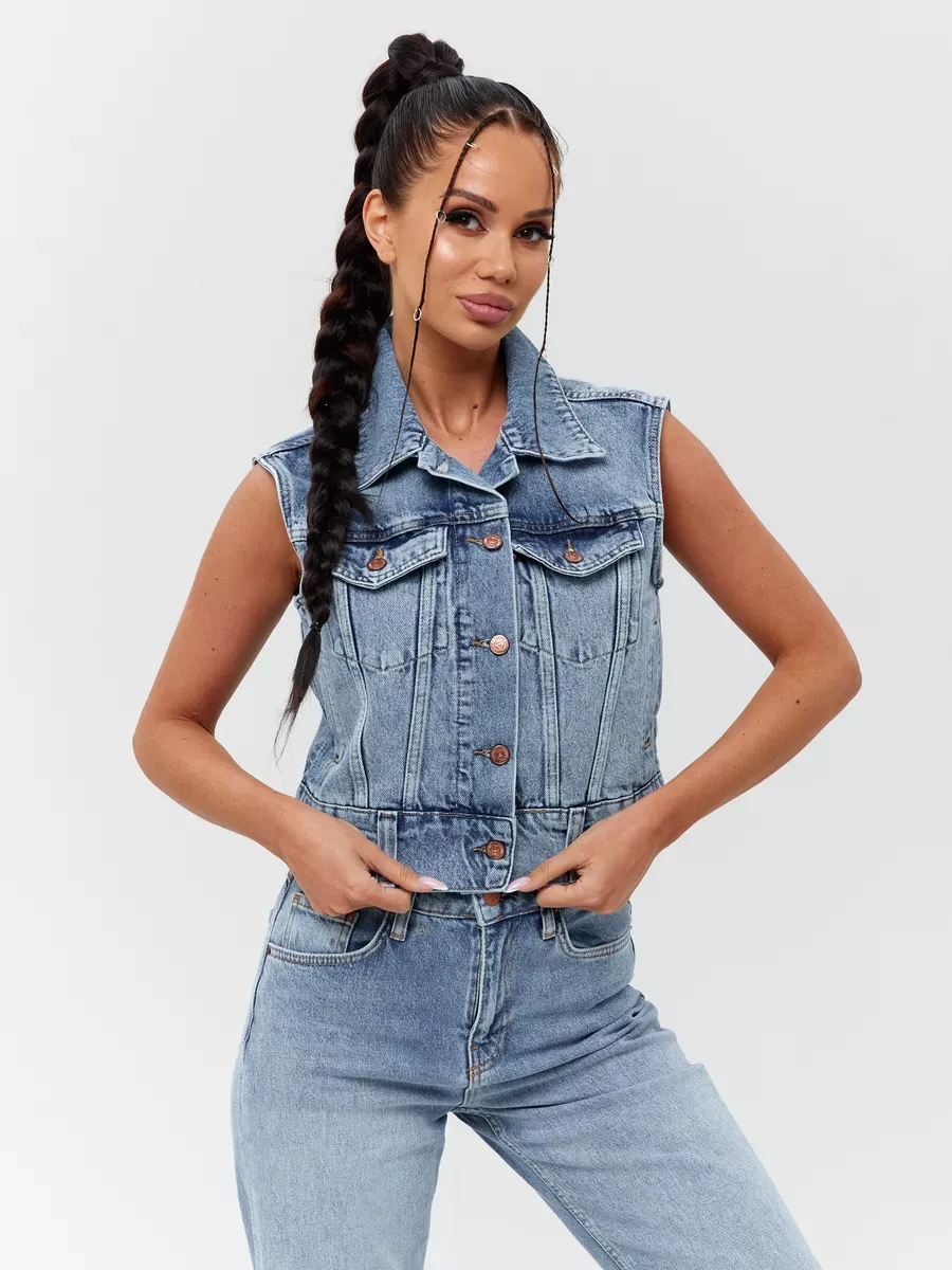 Женский жилет джинсовый безрукавка CRACPOT