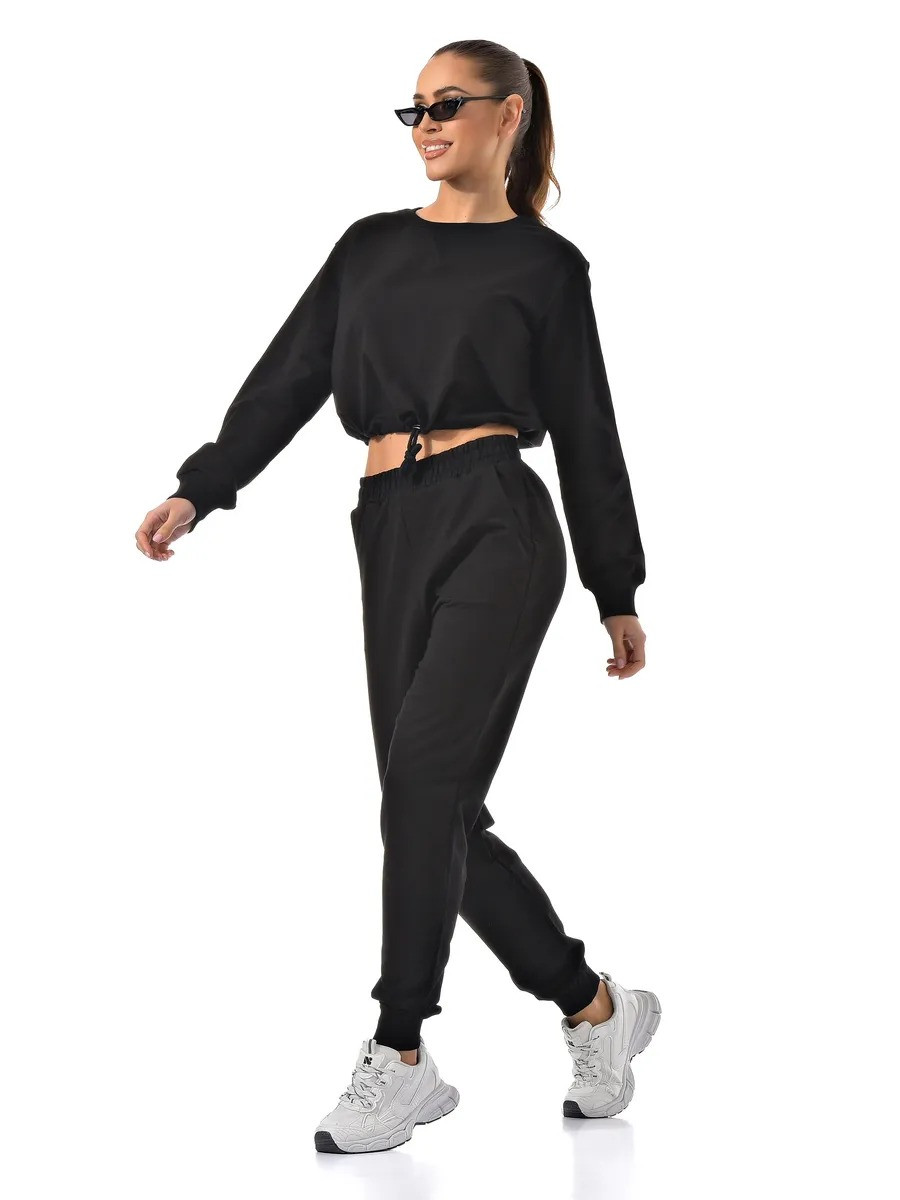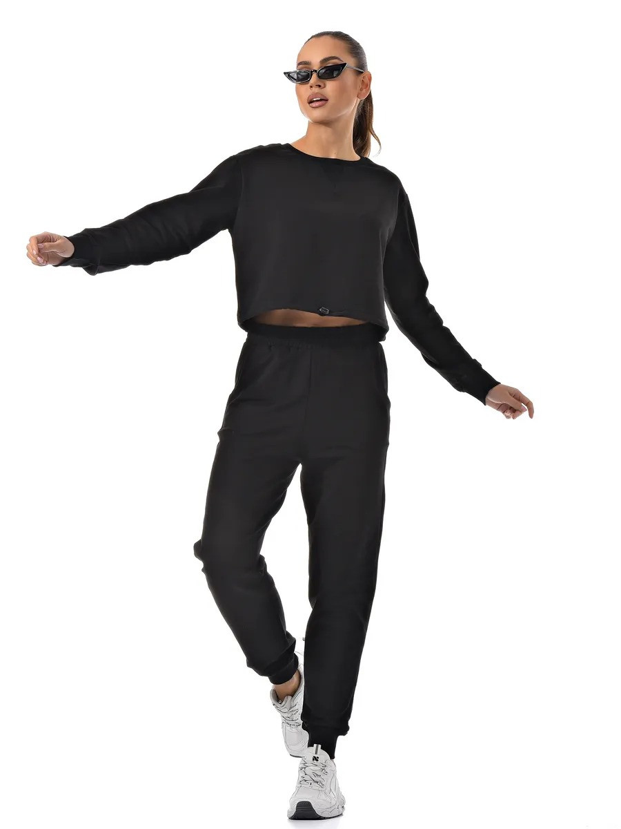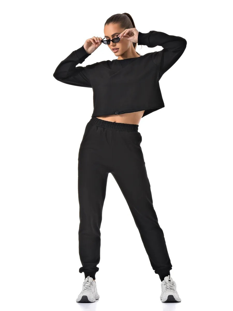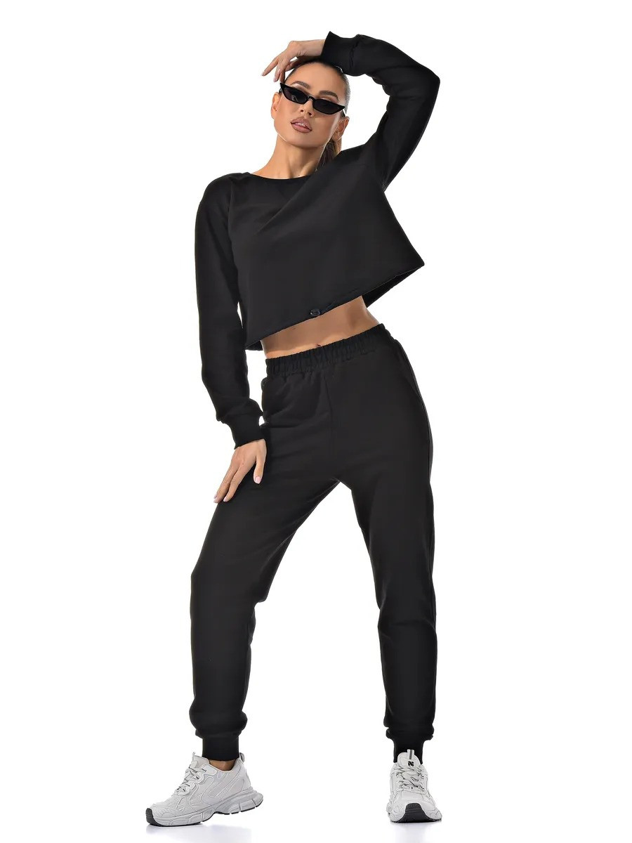 CRACPOT представляет идеальный спортивный костюм сезона — укороченный свитшот и брюки-джоггеры из мягкого, дышащего материала с добавлением лайкры для максимального комфорта и свободы движений.