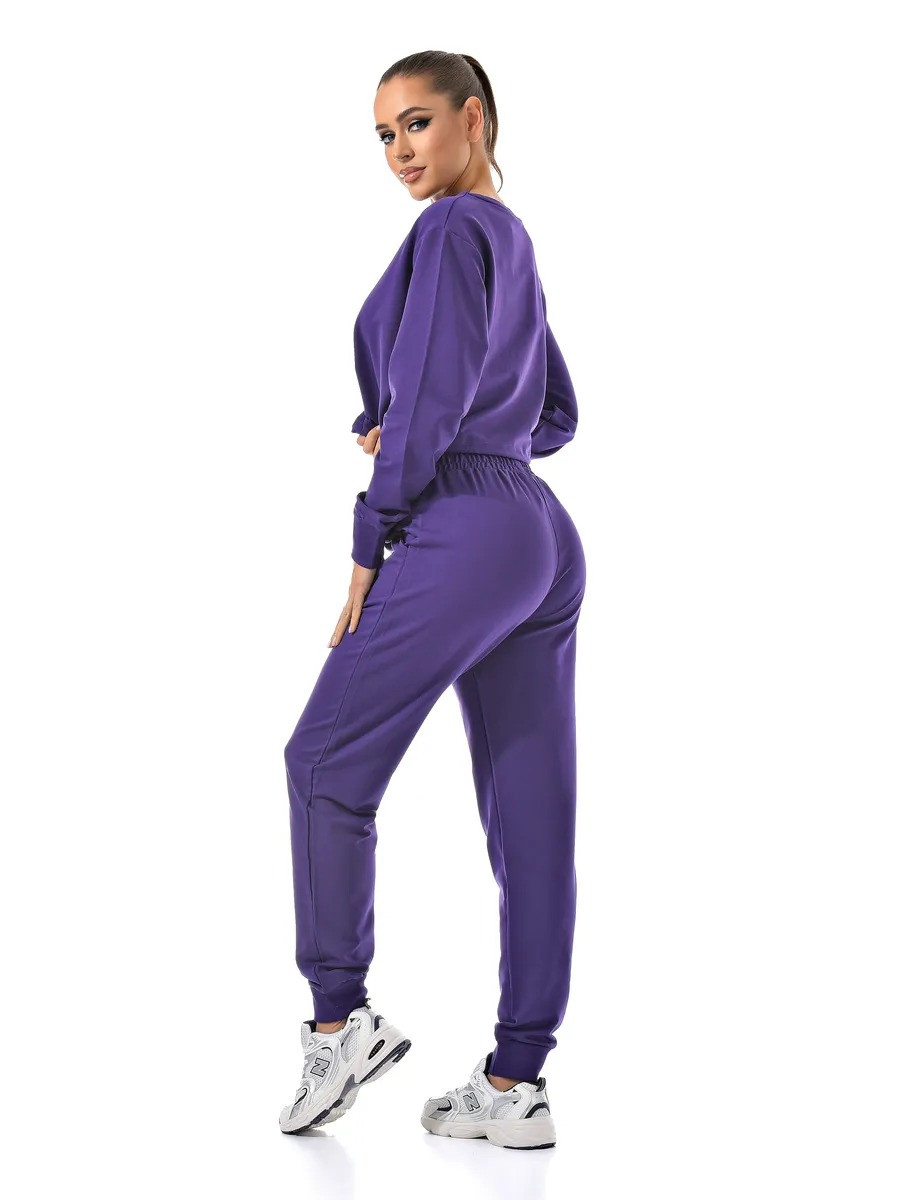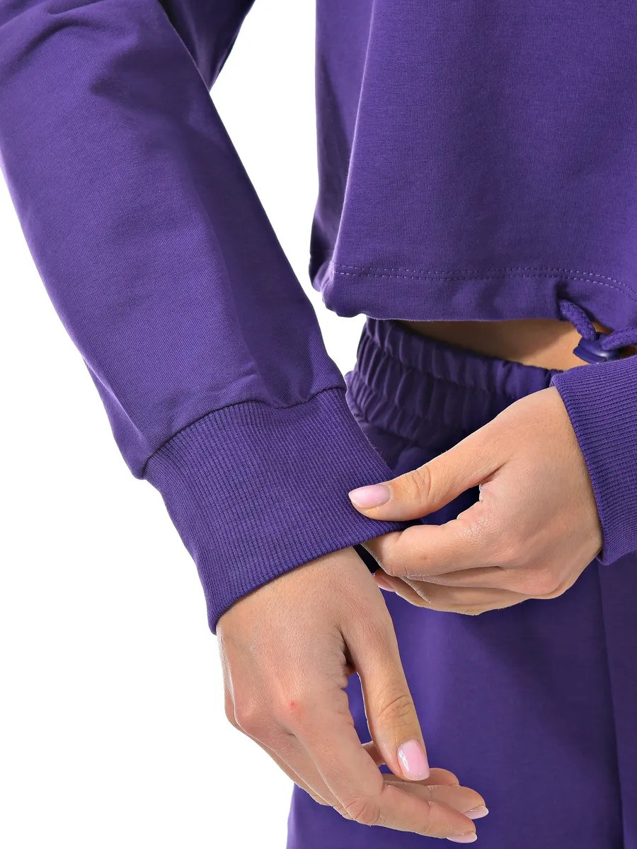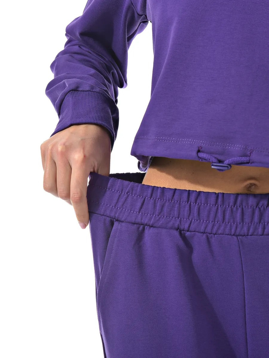 Укороченный свитшот и джоггеры с высокой посадкой созданы из качественного хлопка с добавлением лайкры для эластичности.