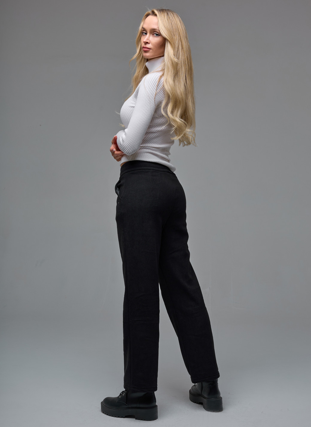 Женские спортивные штаны прямого кроя, выполненные из теплого материала, обеспечивают комфорт и тепло даже в холодную погоду. Удобный пояс на резинке позволяет идеально подогнать размер под фигуру, обеспечивая дополнительную свободу движений. Боковые карманы предусмотрены для удобства хранения мелочей. Эти штаны станут отличным выбором для занятий спортом, прогулок на свежем воздухе или повседневной носки в прохладное время года. Состав - Мерсеризованный хлопок — это натуральное хлопковое волокно, прошедшее специальную обработку раствором каустической соды, что улучшает его свойства. В результате материал становится более прочным, гладким, шелковистым и приобретает красивый блеск, а также меньше мнется, не дает усадки и лучше сохраняет яркие цвета после стирок.