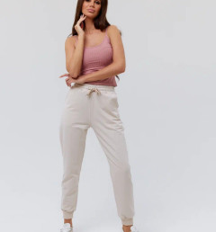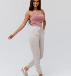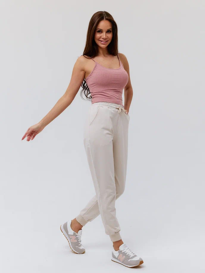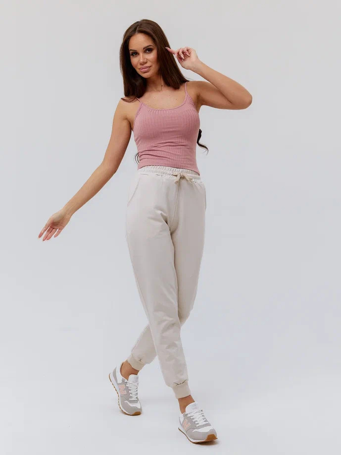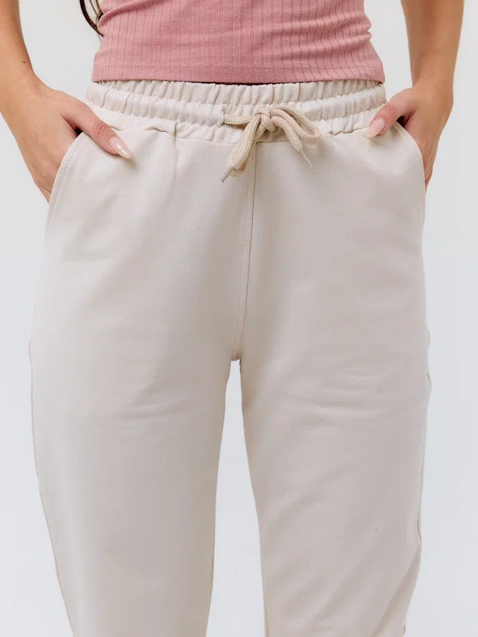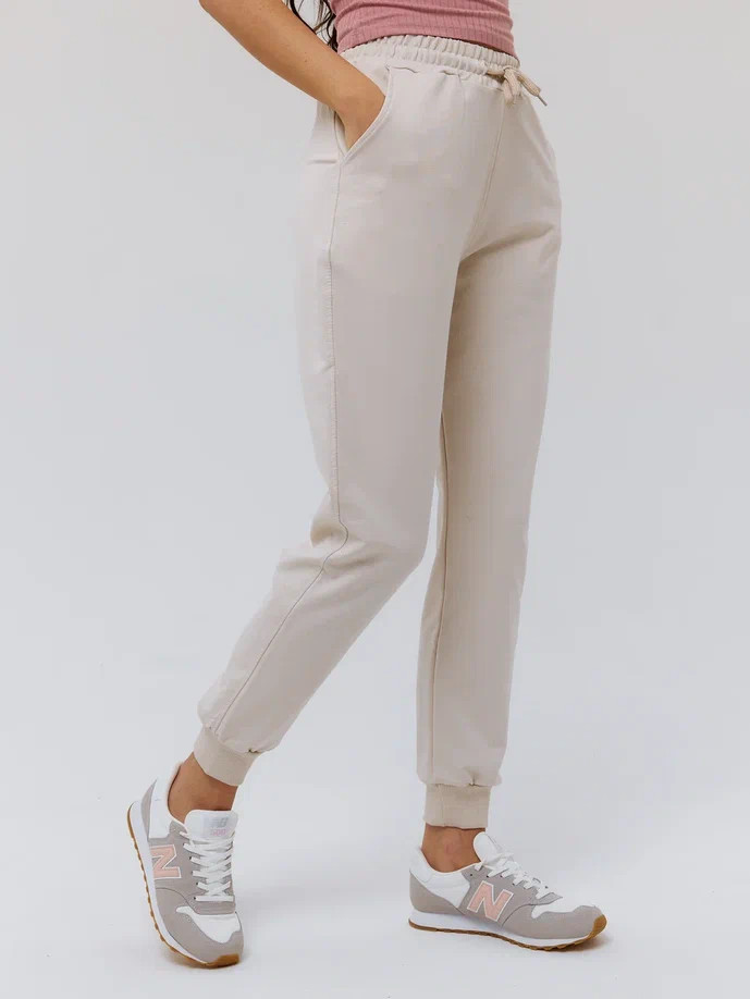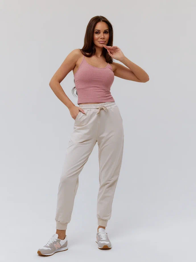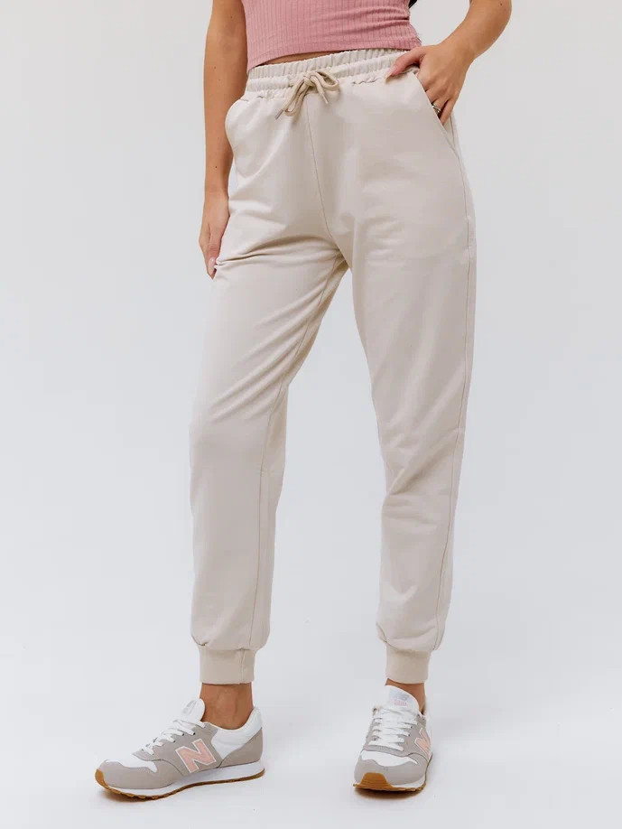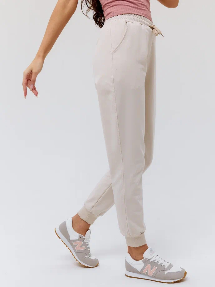 Штаны с плотной, хорошо-тянущейся резинкой, на шнурках. С манжетом. Ткань хорошо тянется, приятная на ощупь и хорошо тянется.