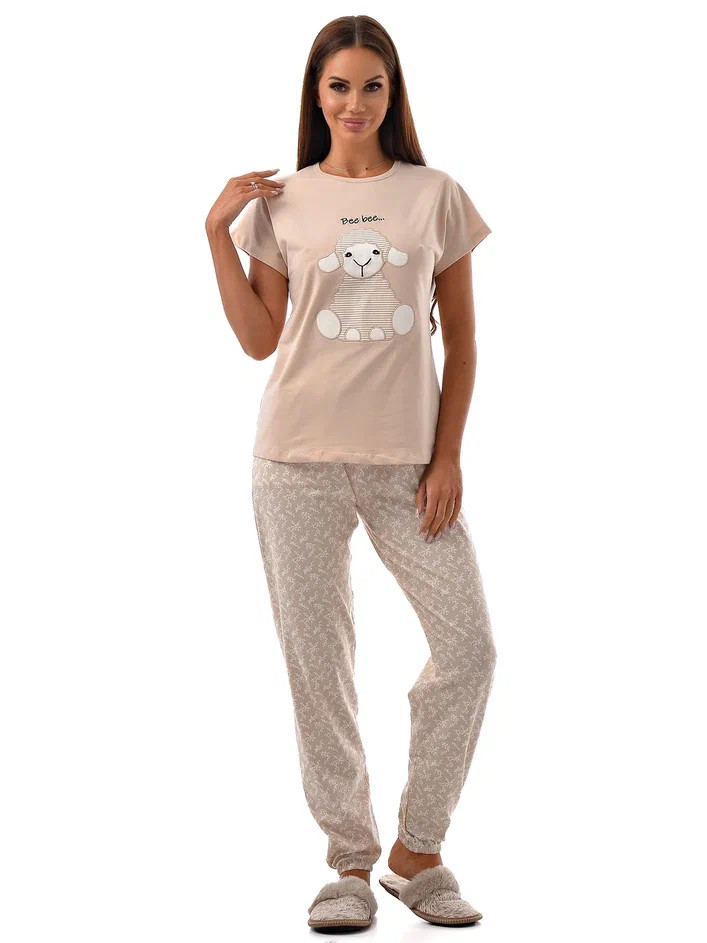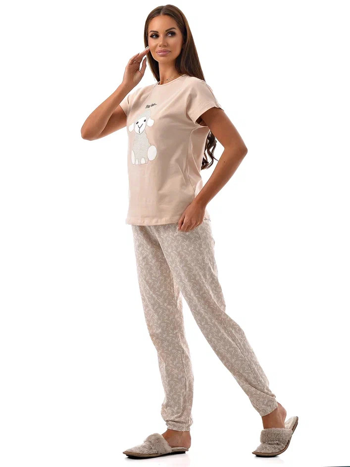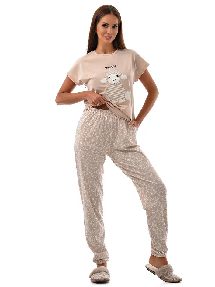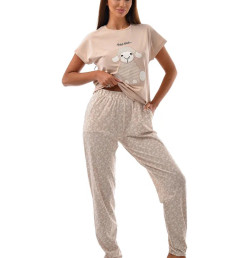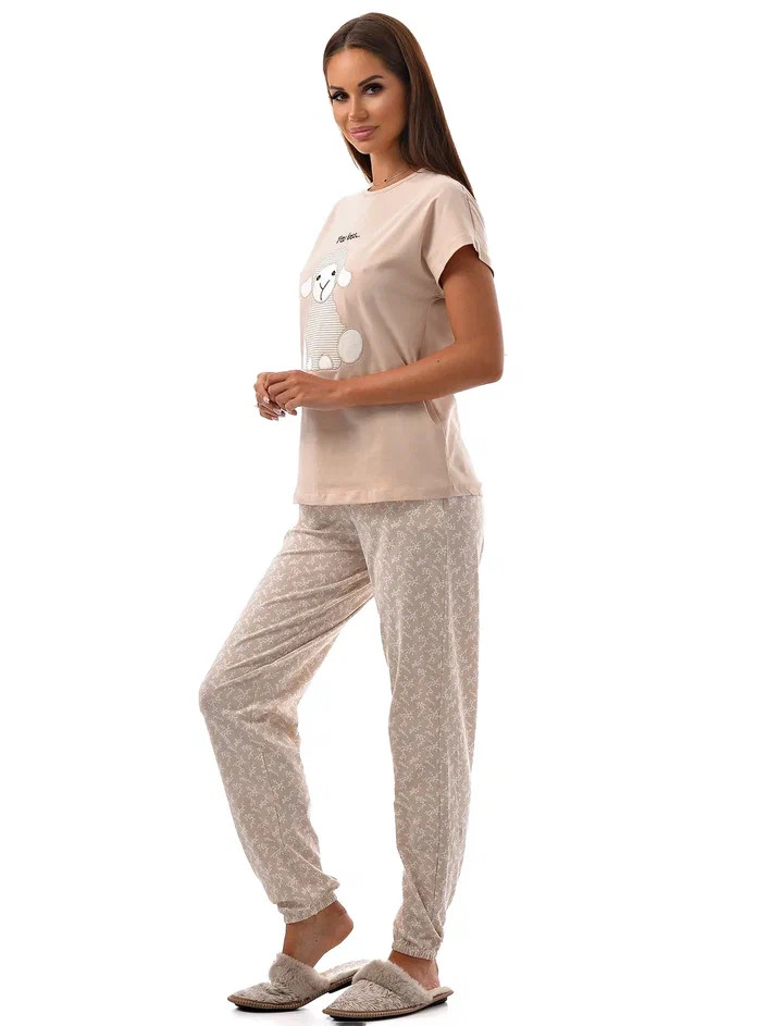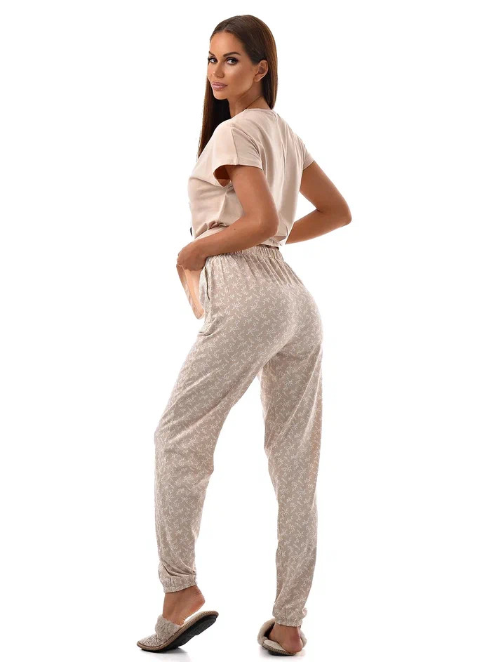 Женский комплект с принтом. В комплект футболка и брюки на резинке.