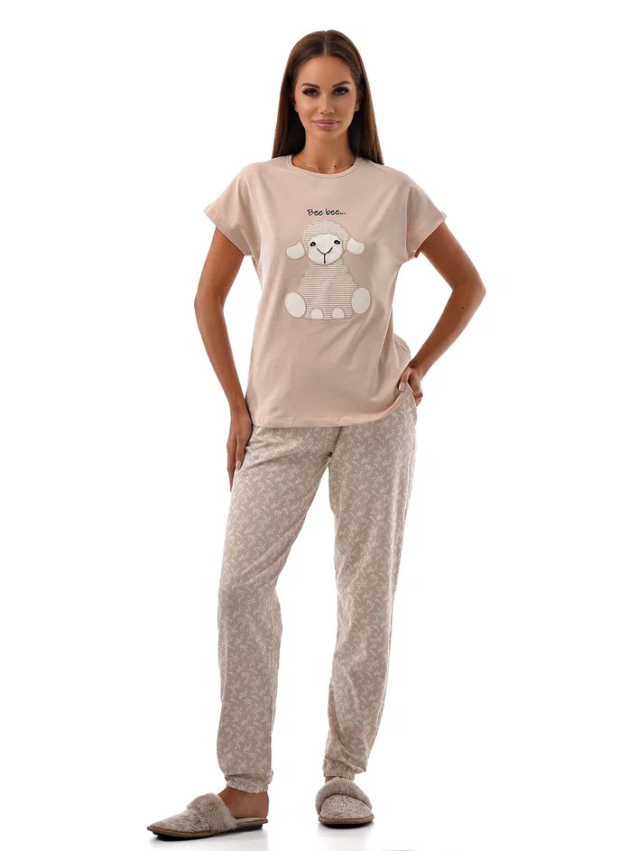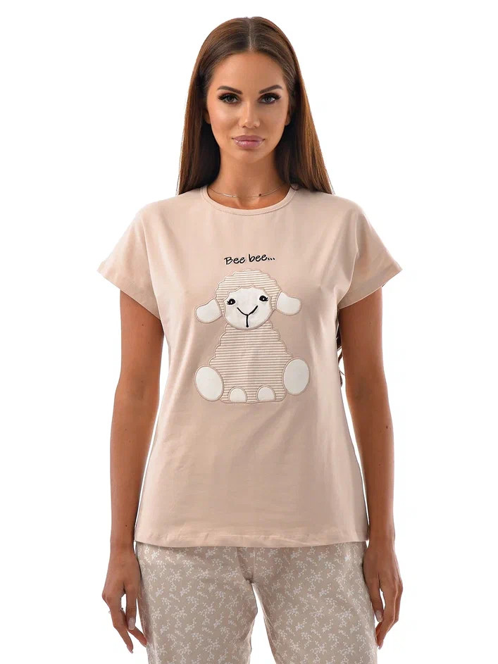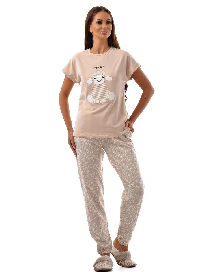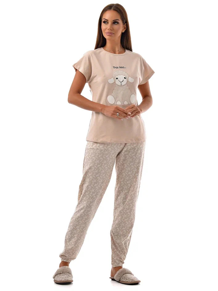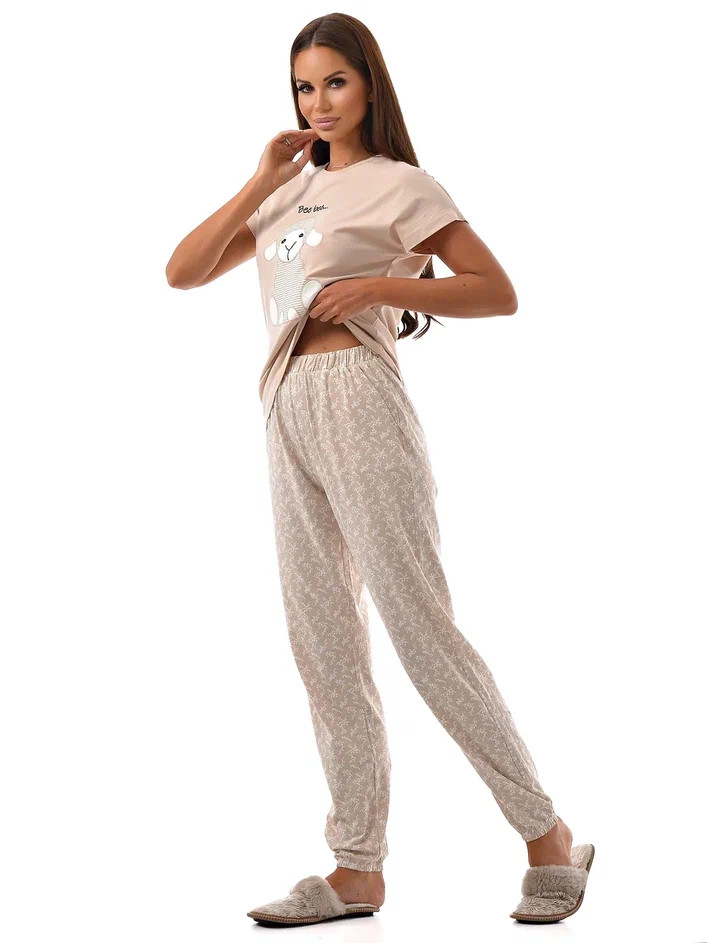 Женский комплект с принтом. В комплект футболка и брюки на резинке.