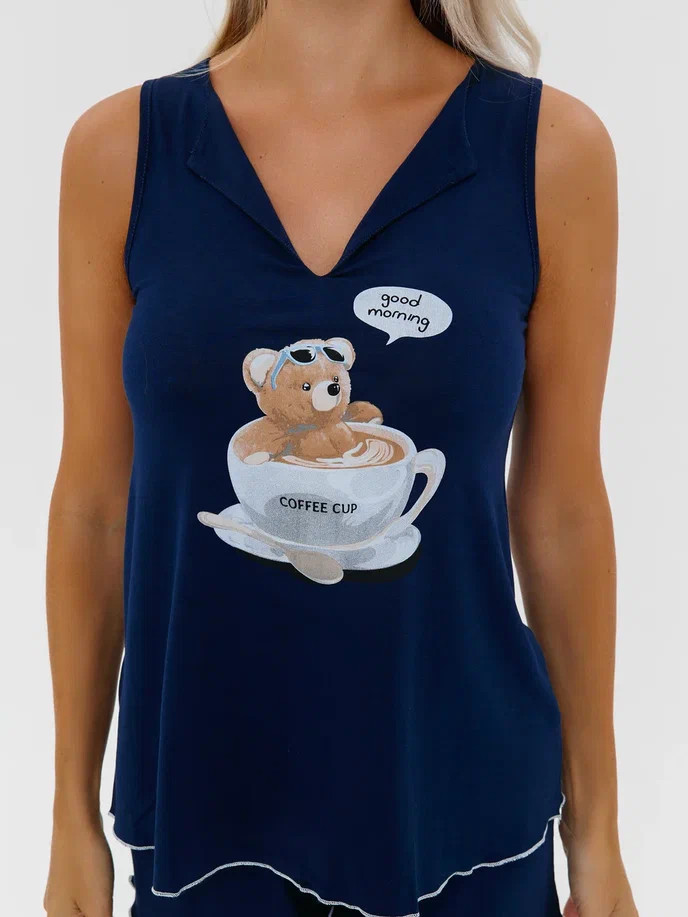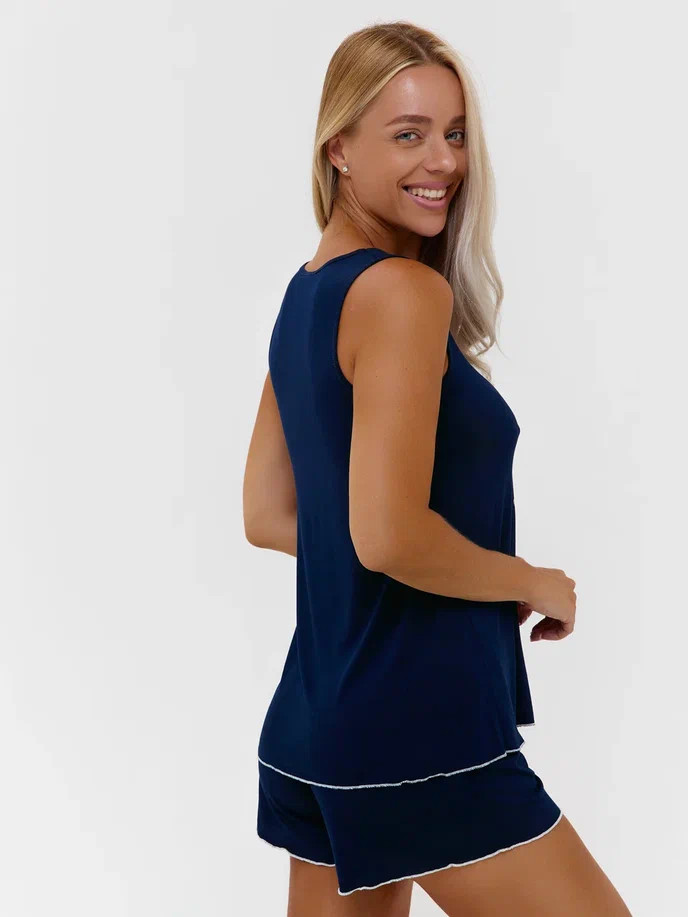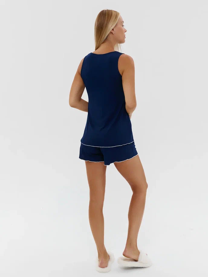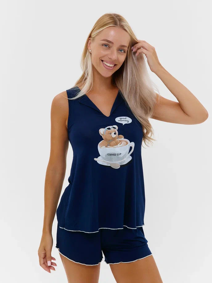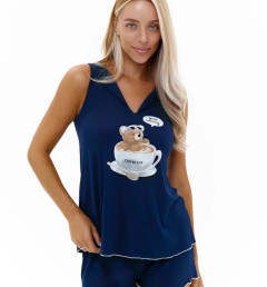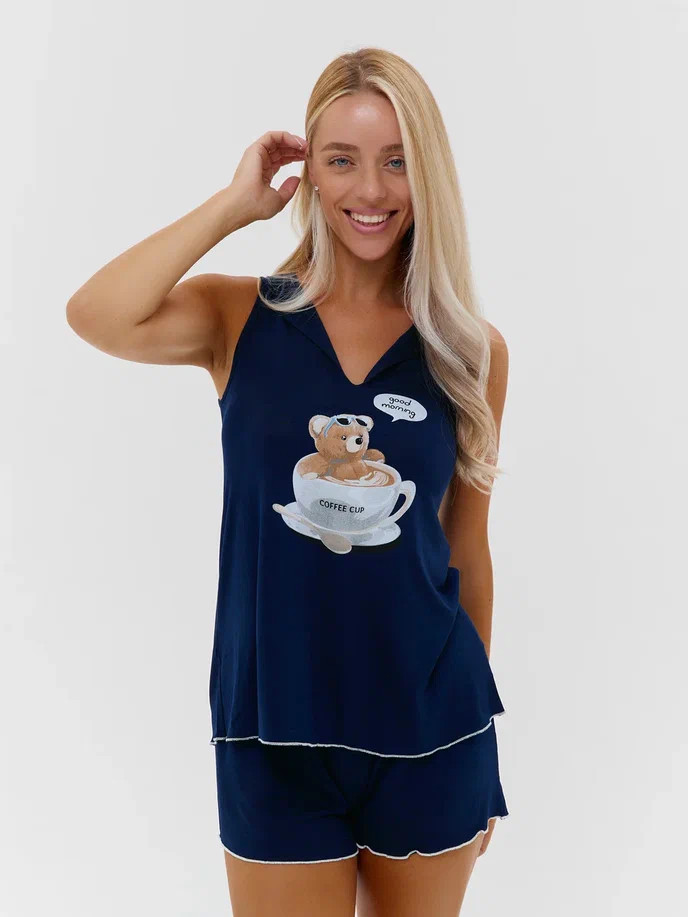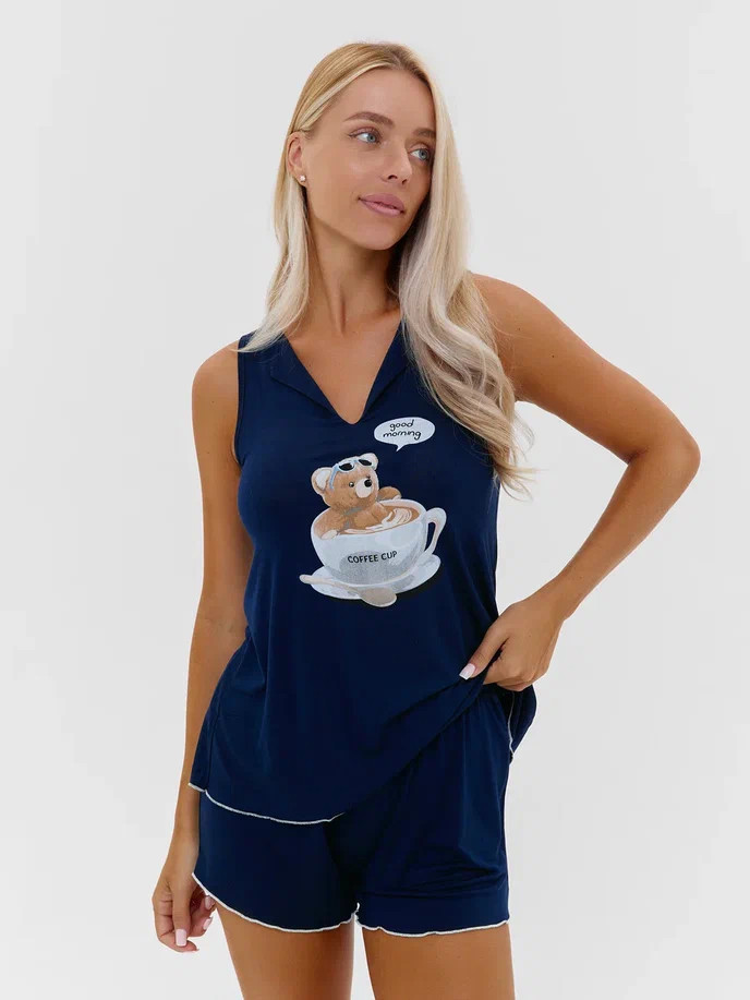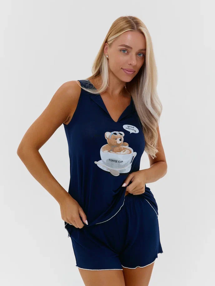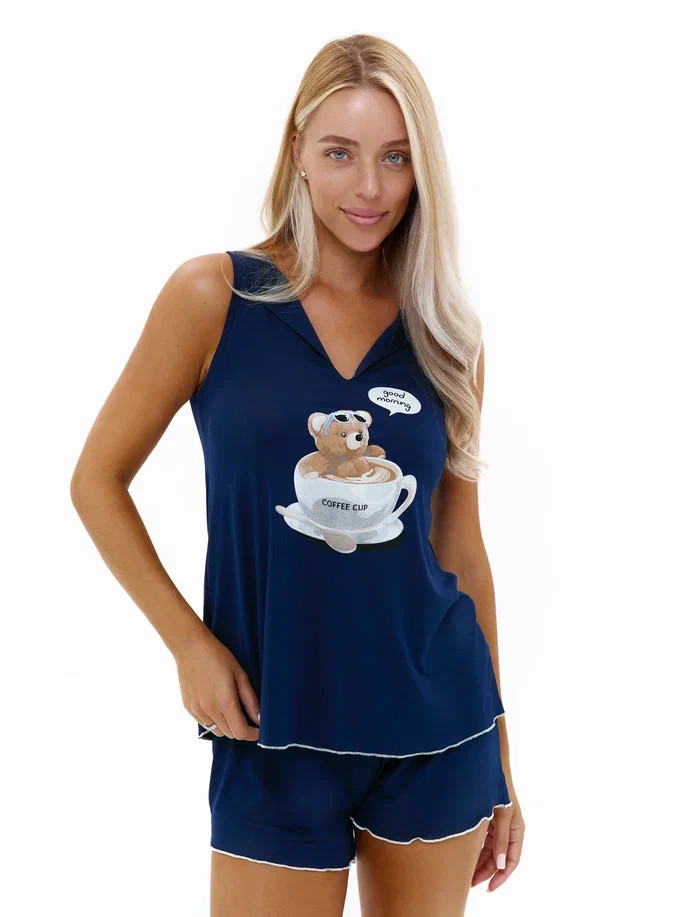 Женский комплект с принтом. В комплекте майка с широкими бретелями и шорты