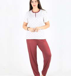 Женский клаасическая пижама, состоящий из футболки на пуговках и широких штанин на резинке.