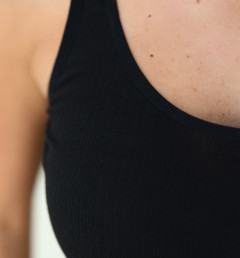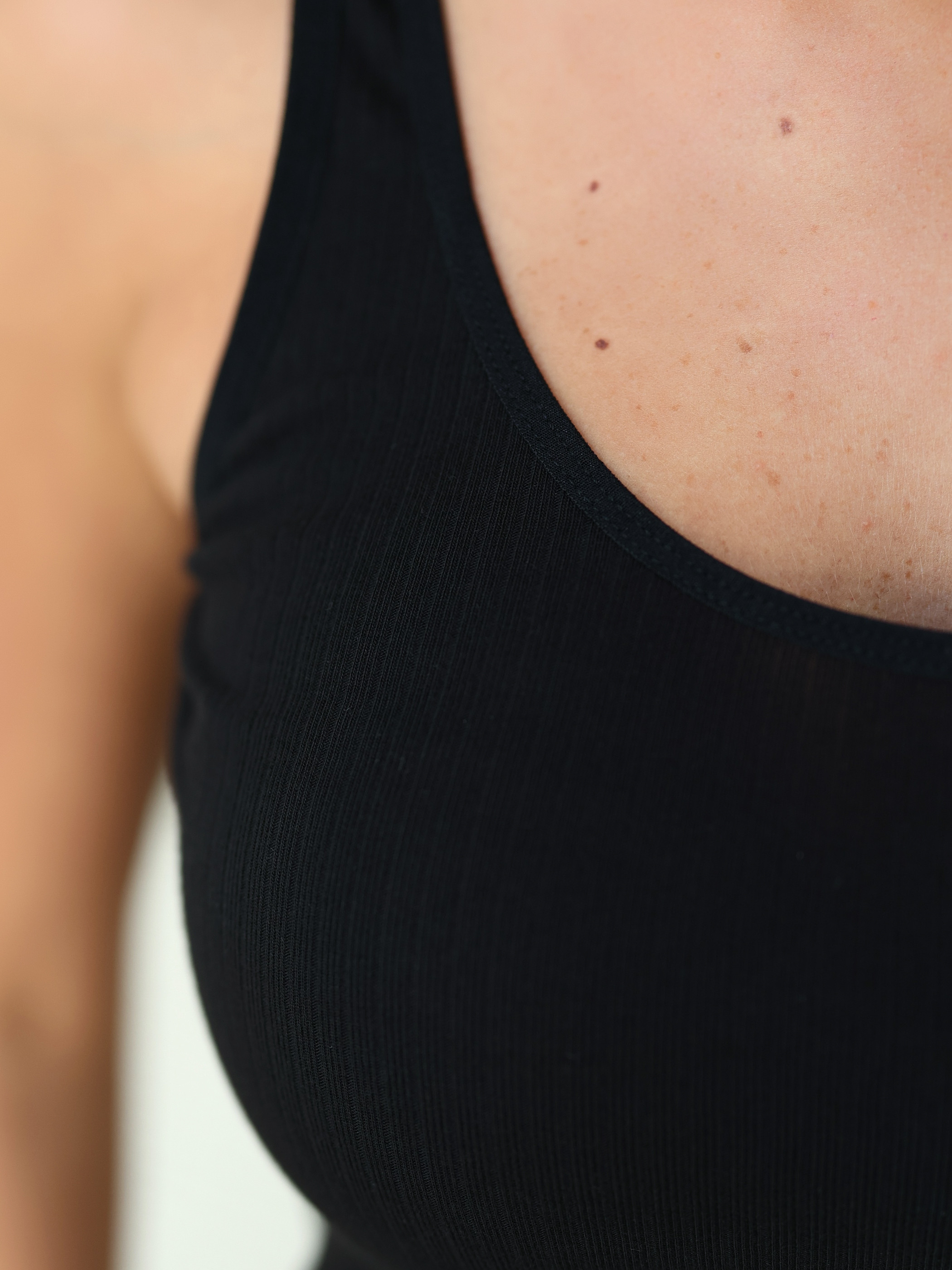 Женский комплект Berrak черного цвета: приталенная майка на широких лямках и трусики. Ткань в рубчик. Комплект изготовлен из 50% хлопка pamuk и 50% модала.