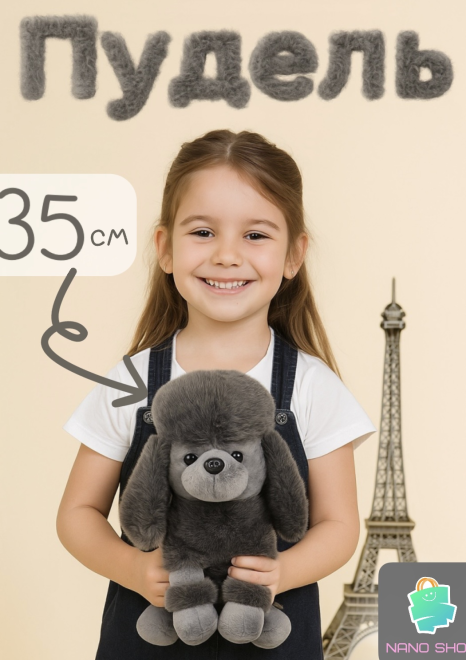 Мягкая игрушка собака пудель 35 см, серый Pydel-Grey-35
