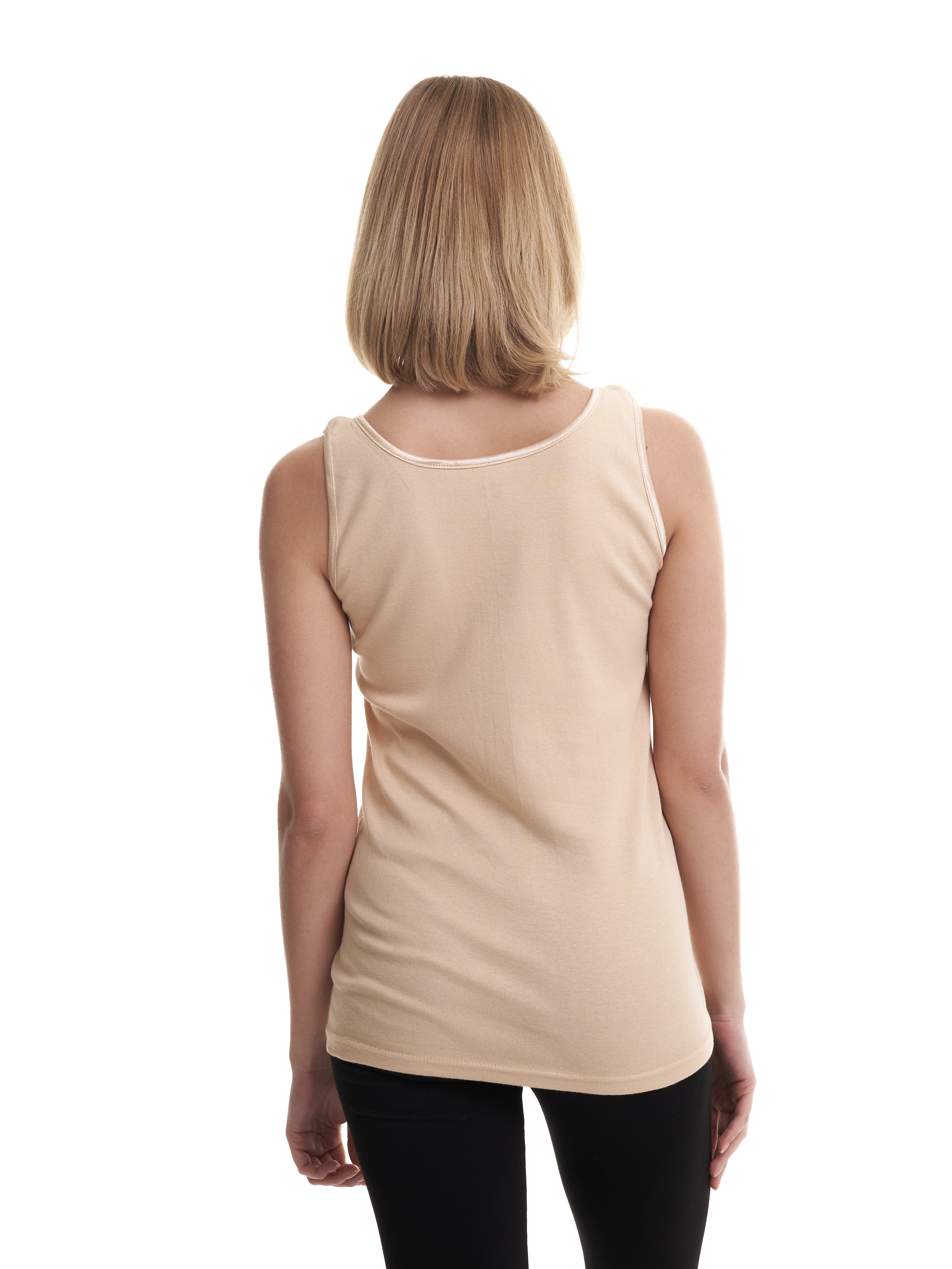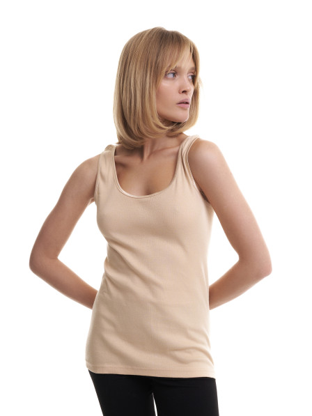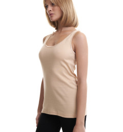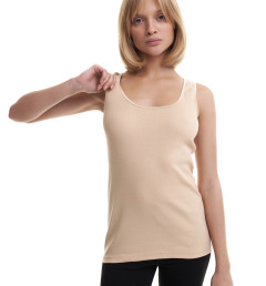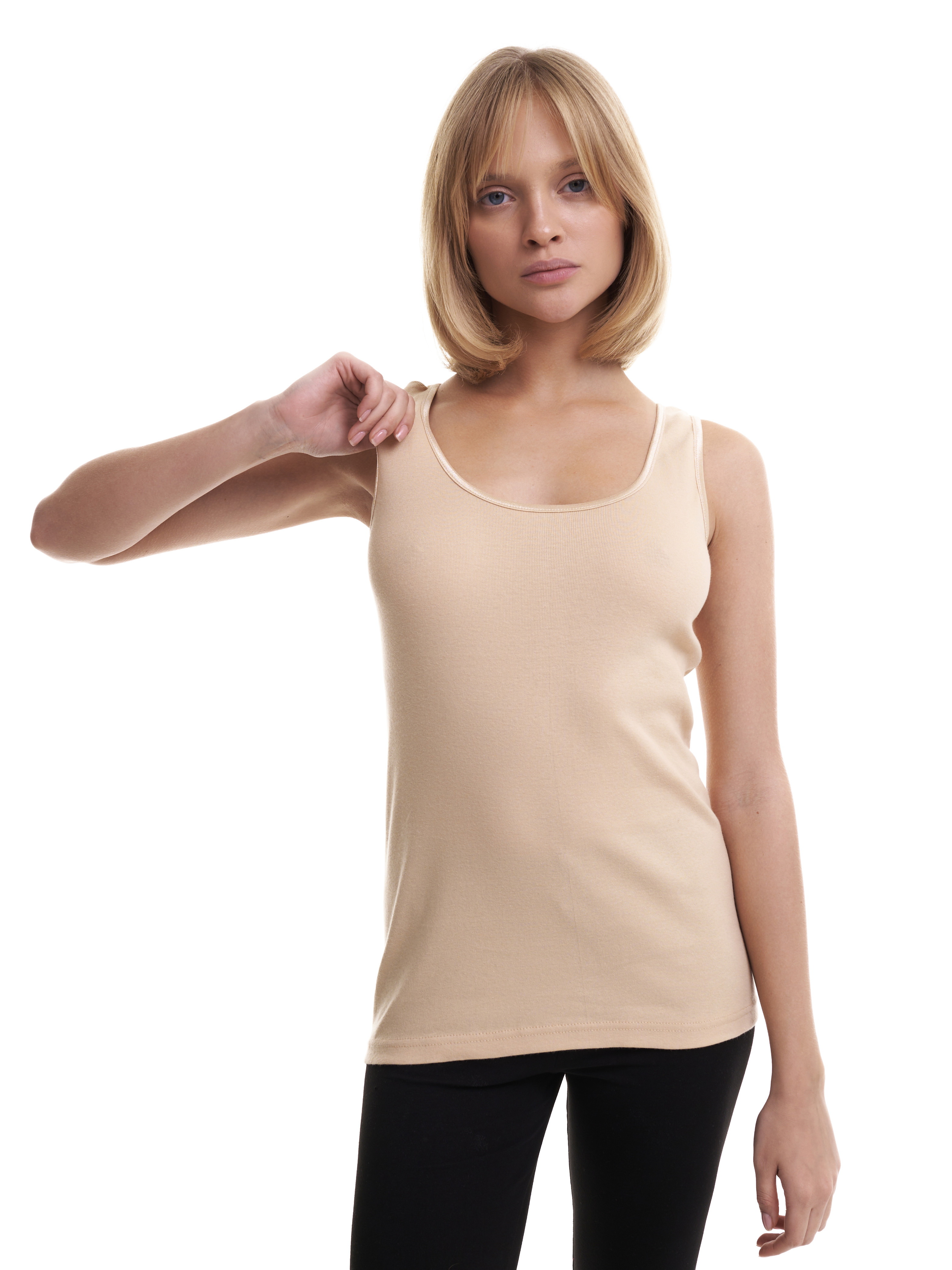 Женская майка Berrak бежевого цвета на широких лямках с классической спиной. Слегка приталенная. Майка изготовлена из 100% хлопка pamuk.