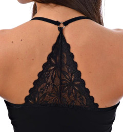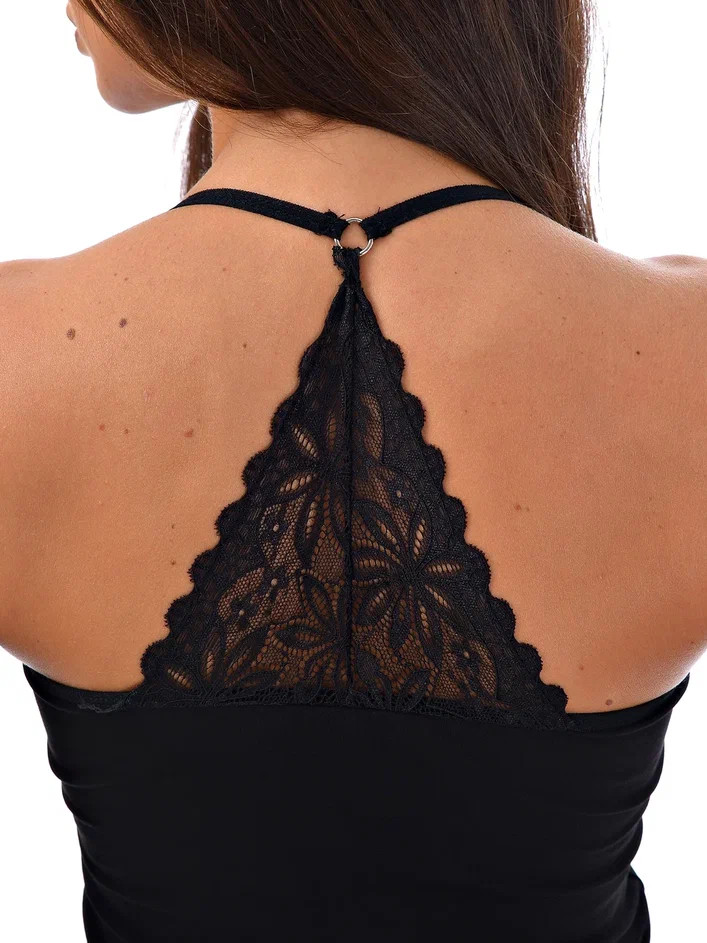 Женская майка Kota на тонких бретелях. Есть ажурные окантовка на груди и вставка на спине. Слегка приталенная. Майка изготовлена из 93% хлопка pamuk и 7% эластана.