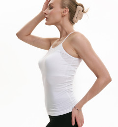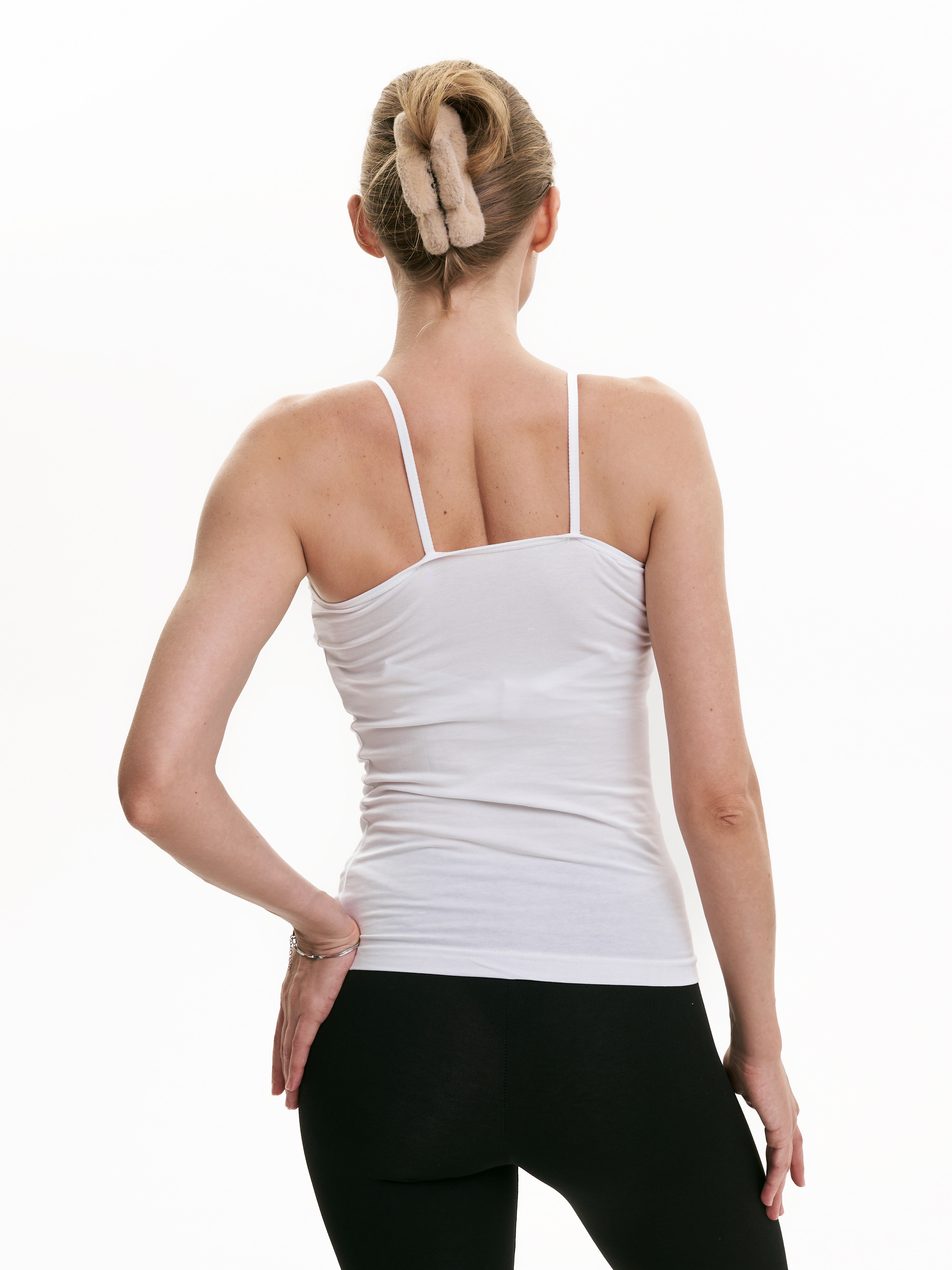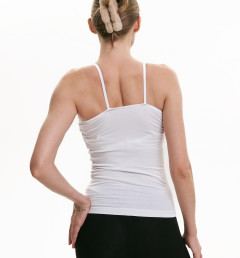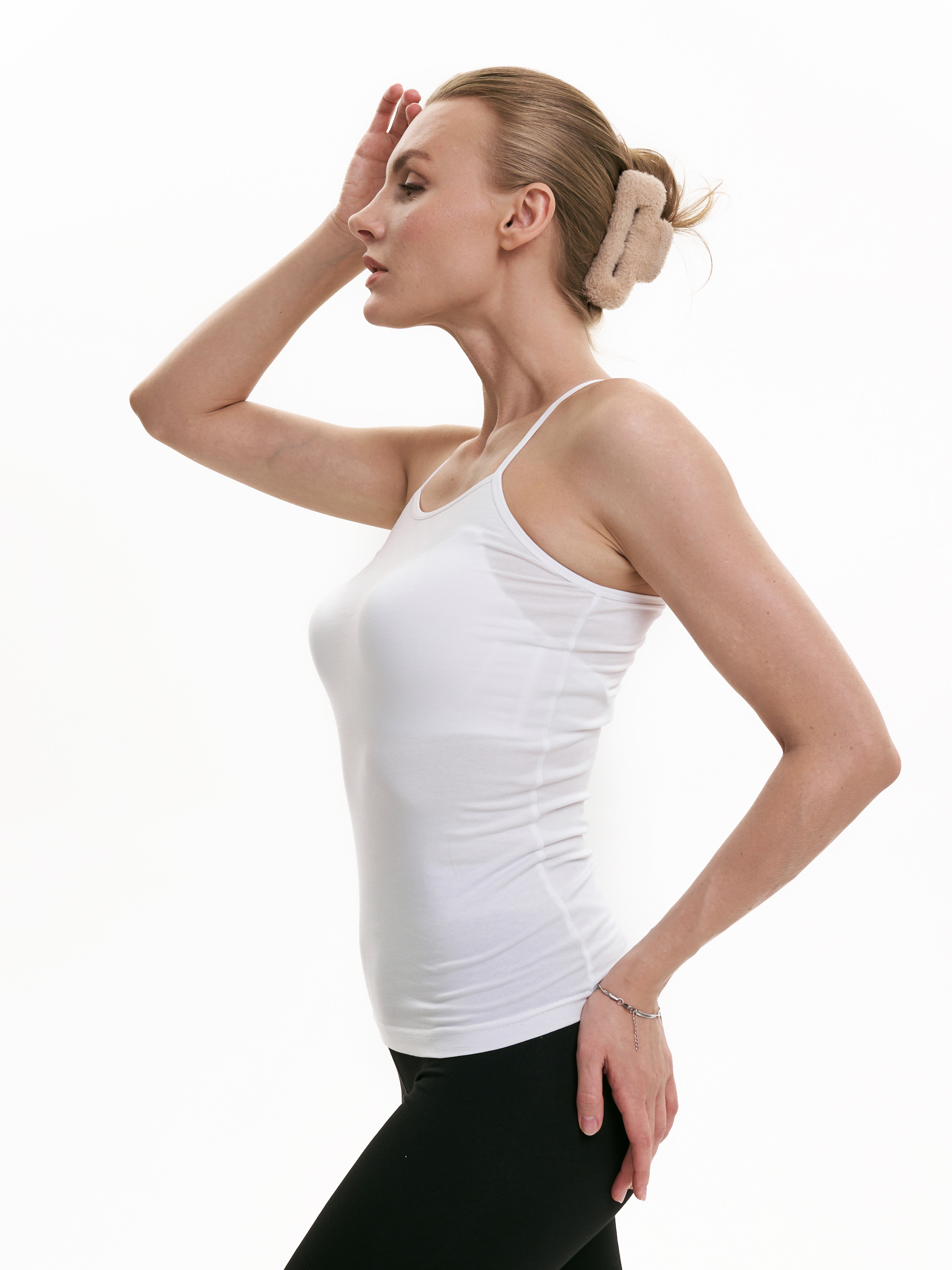 Женская майка Kota белого цвета на тонких бретелях. Приталенная. Майка изготовлена из 93% хлопка pamuk и 3% эластана.