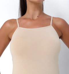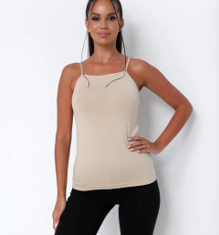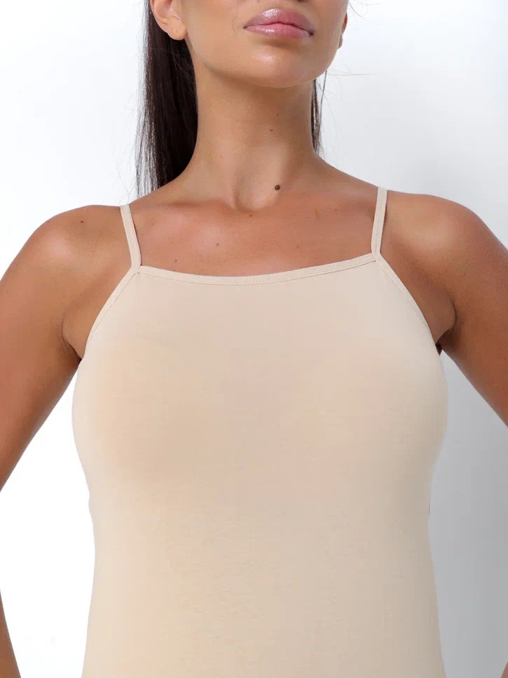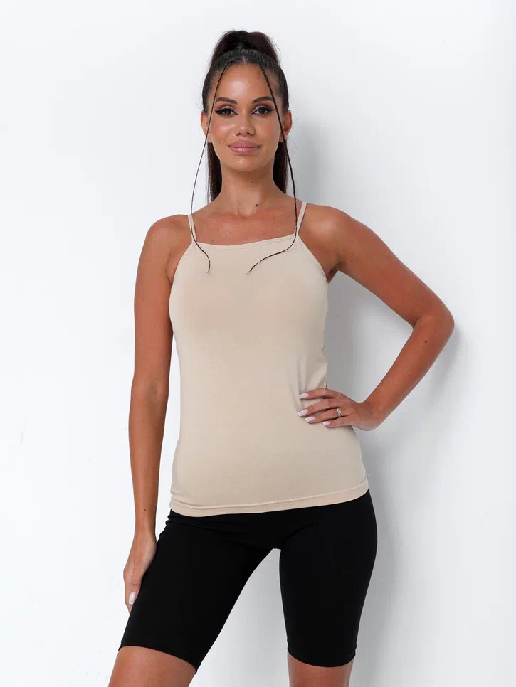 Женская майка Kota бежевого цвета на тонких лямках. Приталенная. Майка изготовлена из 93% хлопка и 3% эластана.