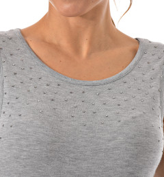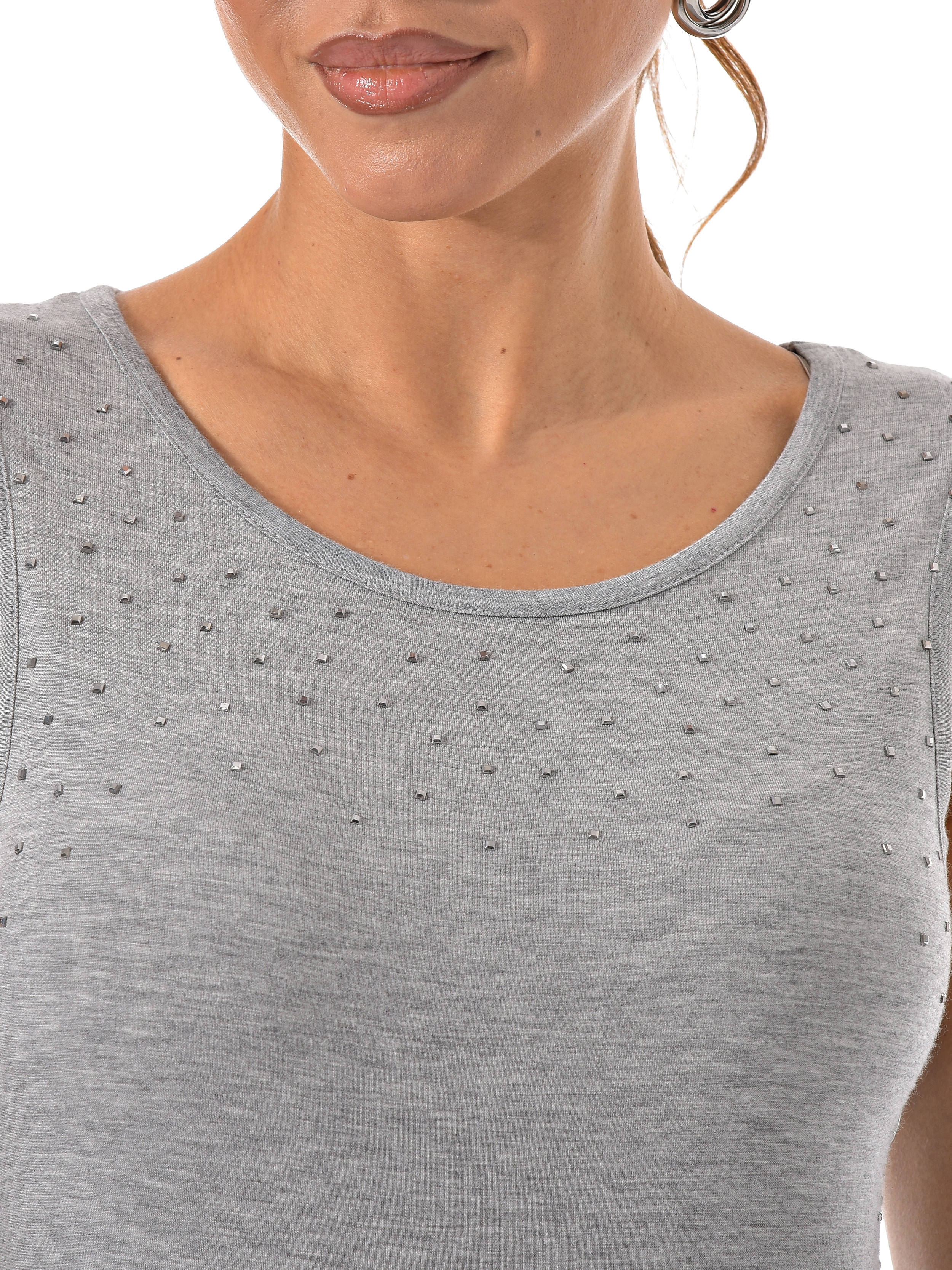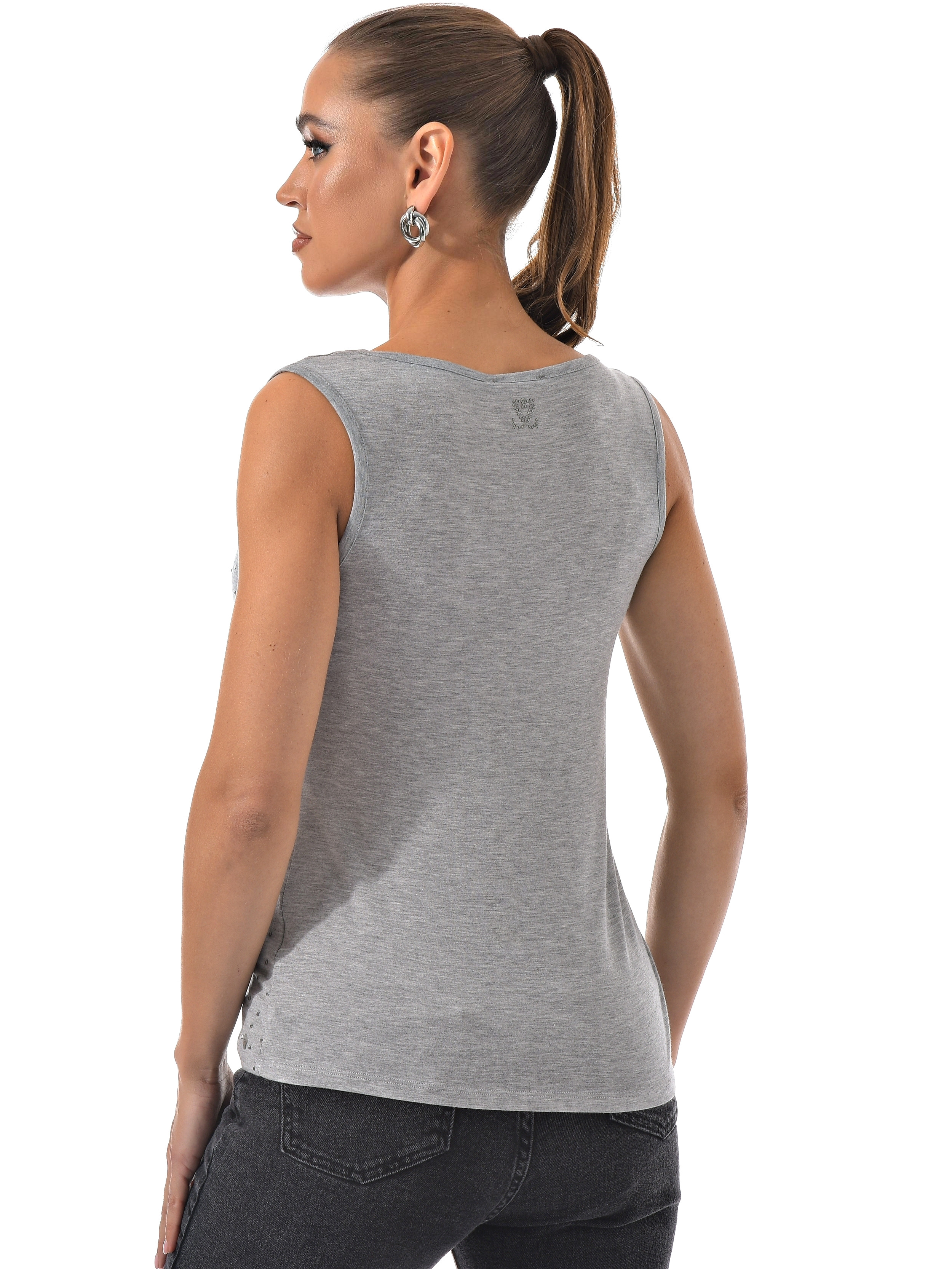 Топ украшен яркими стразами, которые придают ему изысканный и праздничный вид. Благодаря этому дополнению, топ-майка Sassofono станет отличным выбором для особых случаев, будь то вечеринка, свидание или торжественное мероприятие.