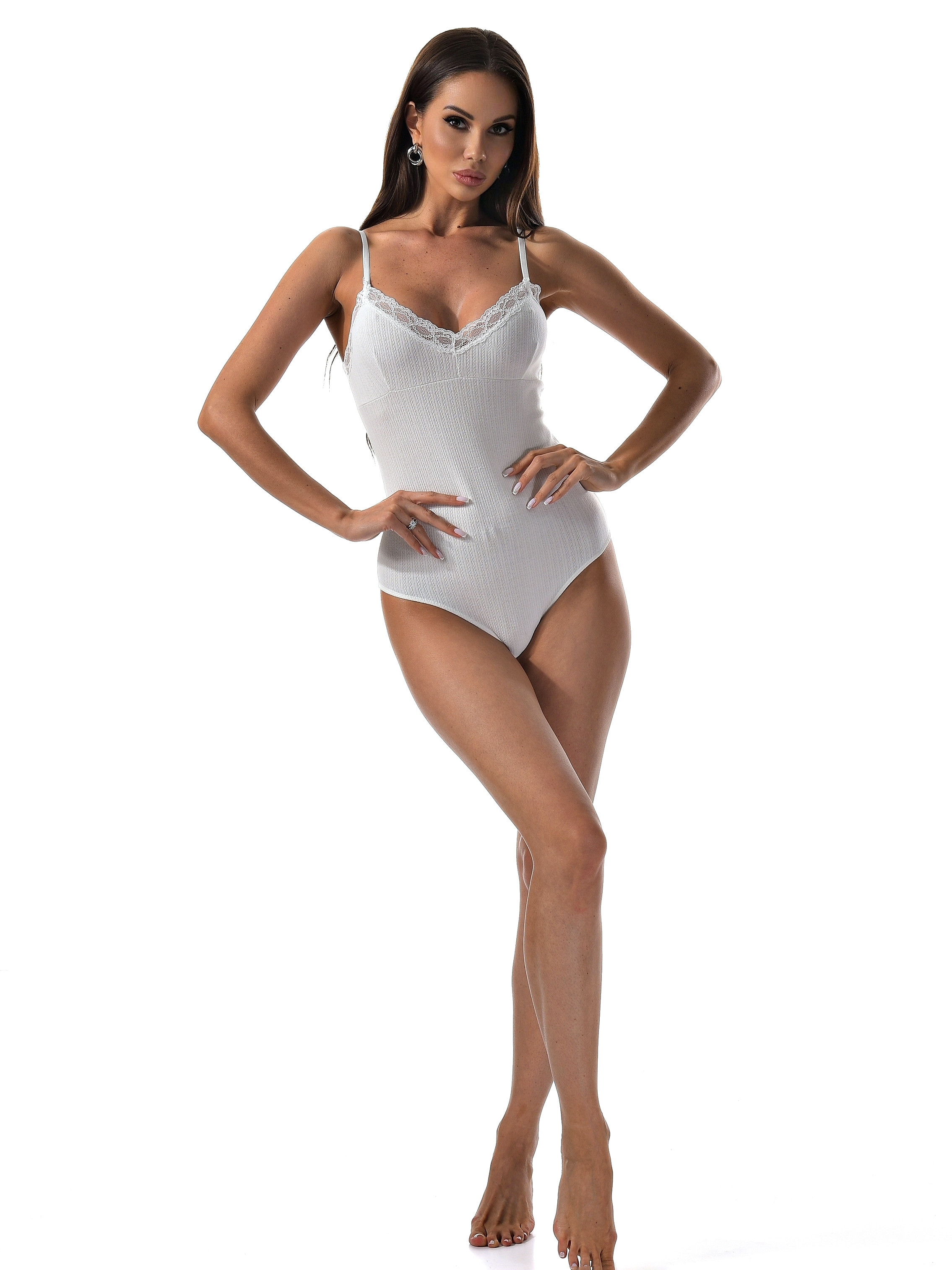 Классическое женское боди Berrak с кружевным V-образным вырезом на тонких бретельках. Складки подчеркивают грудь, а хлопок pamuk создает приятные ощущения. Красивый рельефный рисунок. Застежка на крючках.
