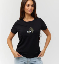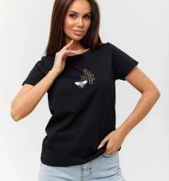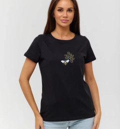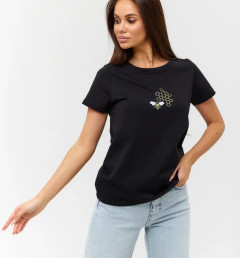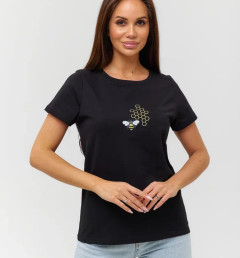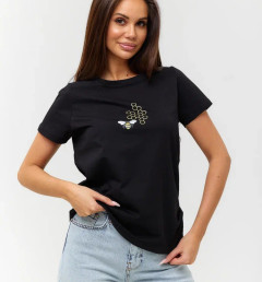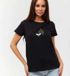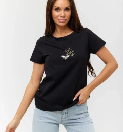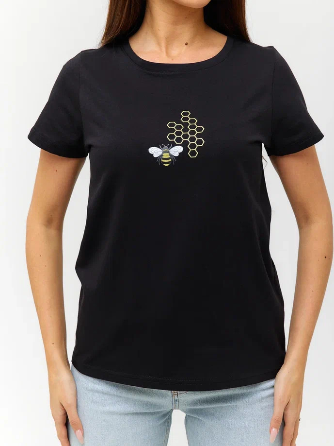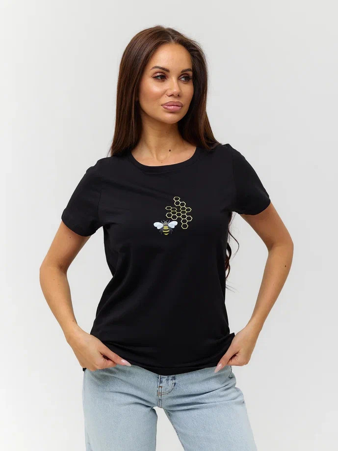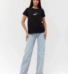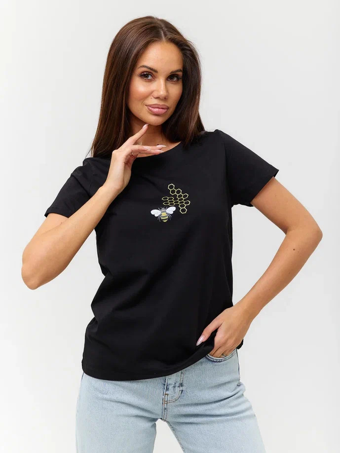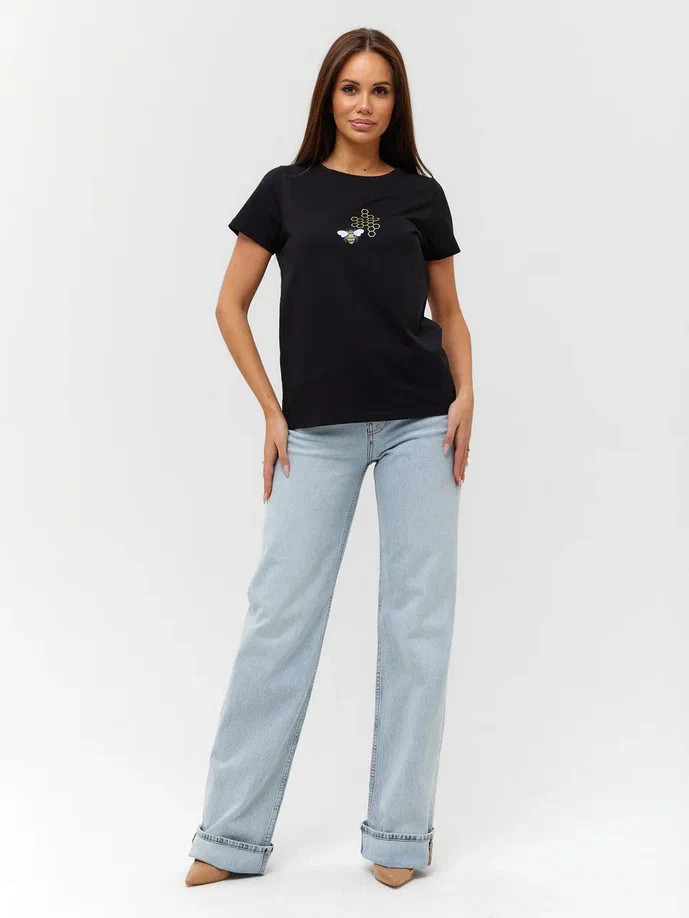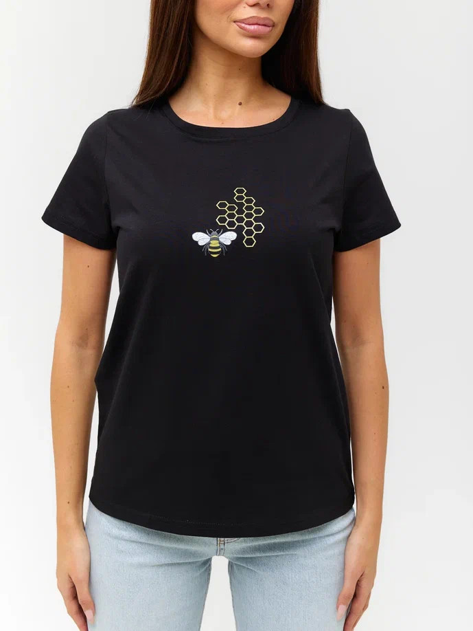 Футболка классического фасона Berrak черного цвета прямого кроя, с коротким рукавом и округлым вырезом. Свободная посадка. С принтом. Рукав втачной с манжетом. Футболка сшита из 100 % хлопкового полотна.