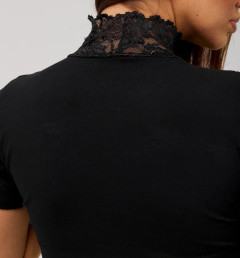 Футболка Kota классического кроя черного цвета, с коротким рукавом. Верх футболки выполнен из ажурной сетчатой ткани. Приталенная, плотно держится на фигуре. Рукав втачной с манжетом. Футболка сшита из 100 % хлопка pamuk.