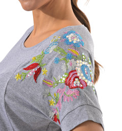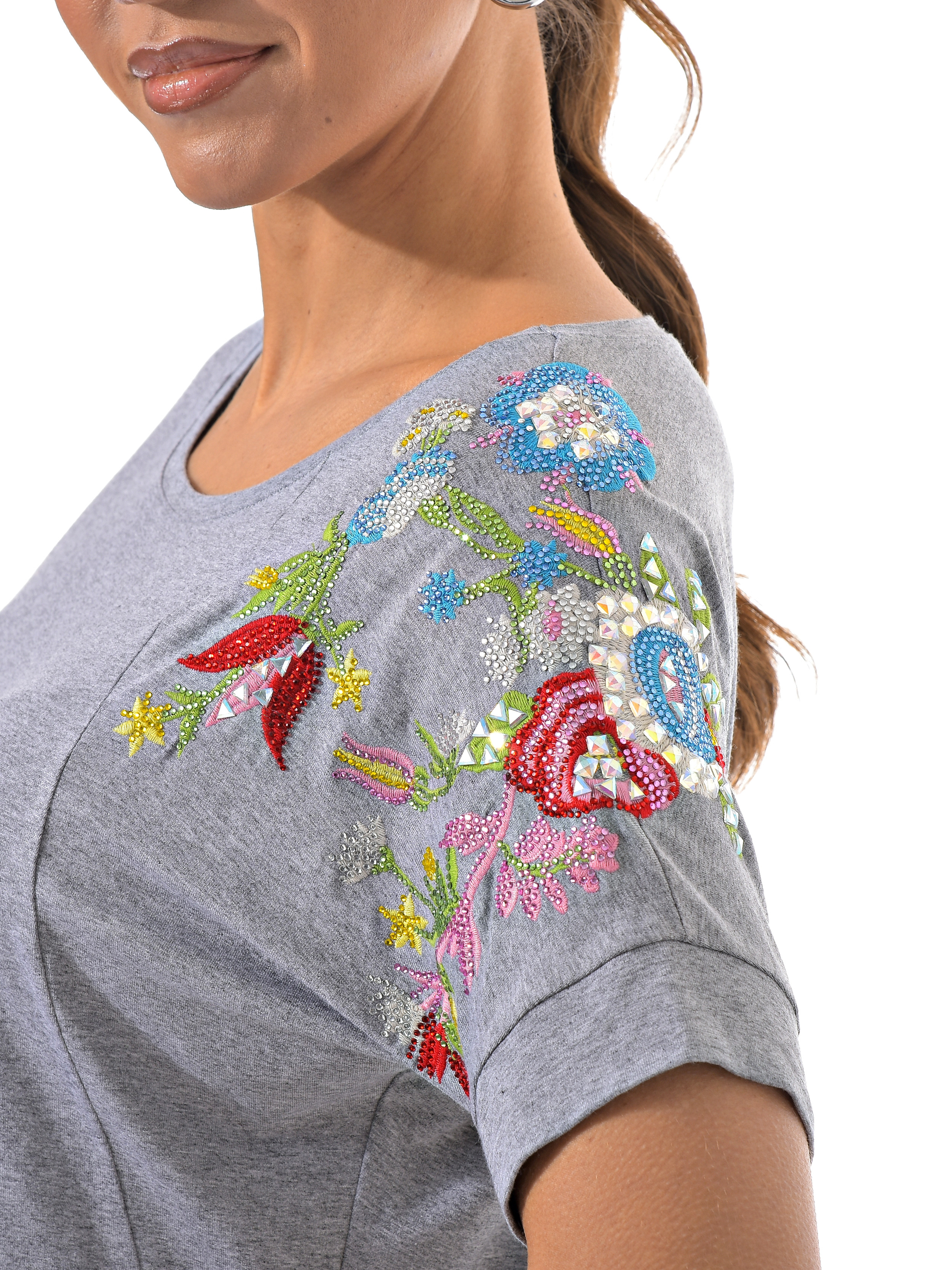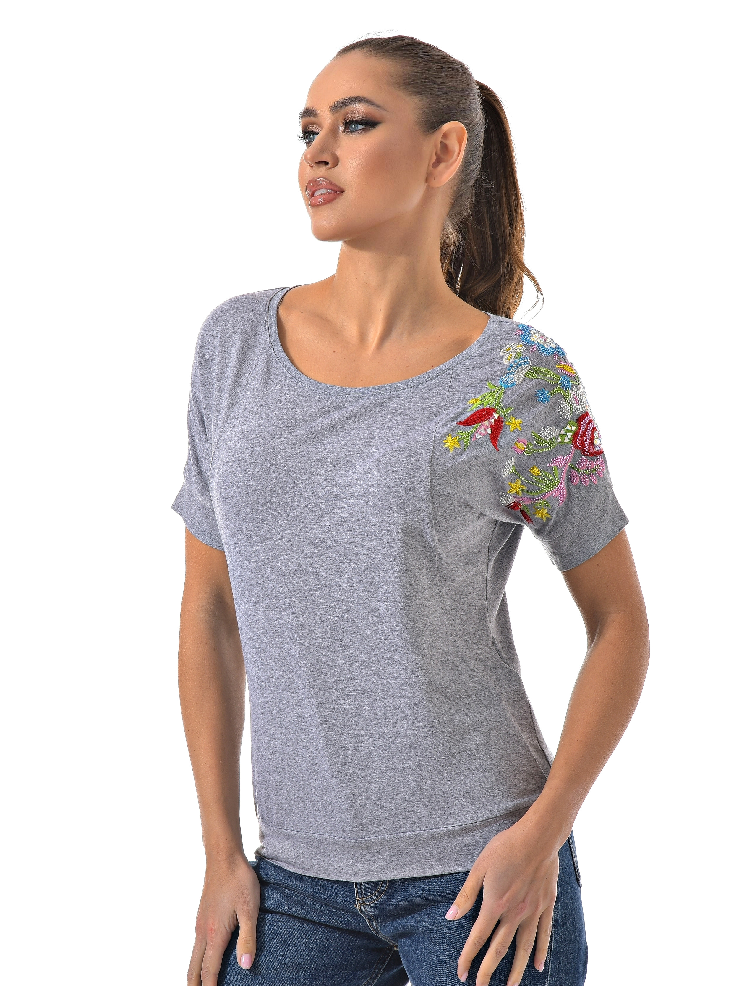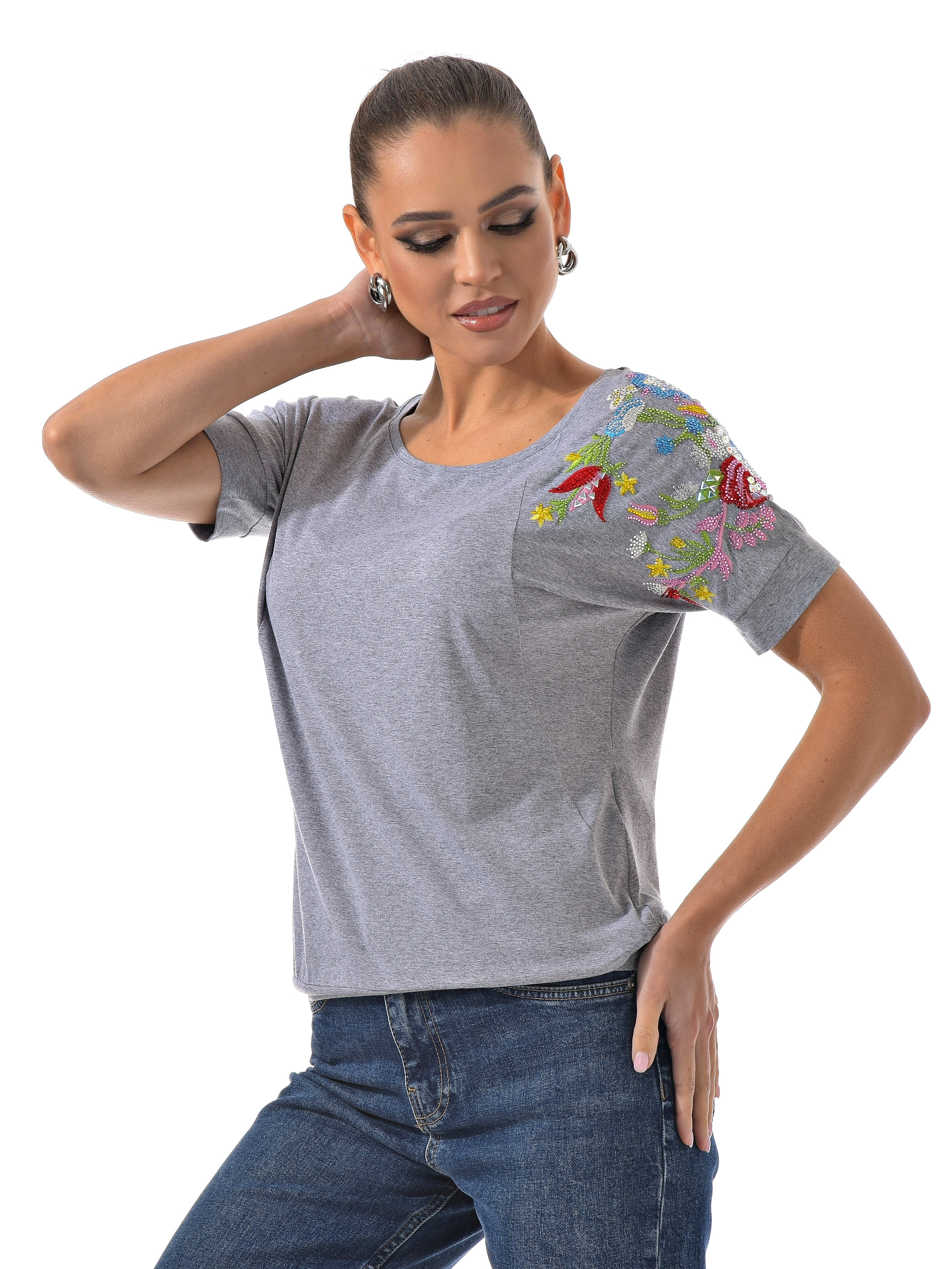 Футболка Sassofono украшена изящными стразами, которые придают ей неповторимый блеск и шарм. Этот элемент декора делает блузку идеальной для особых случаев, добавляя изысканности и роскоши в образ.