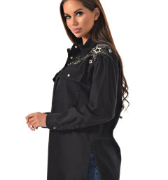 Длинные рукава и классический крой подчеркивают женственность, а декоративные стразы добавляют уникальности и изысканности образу.