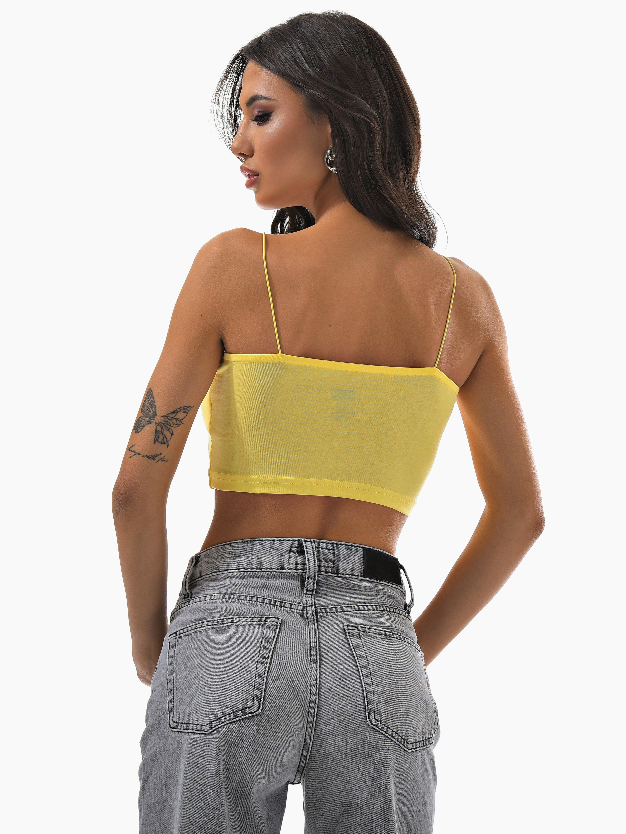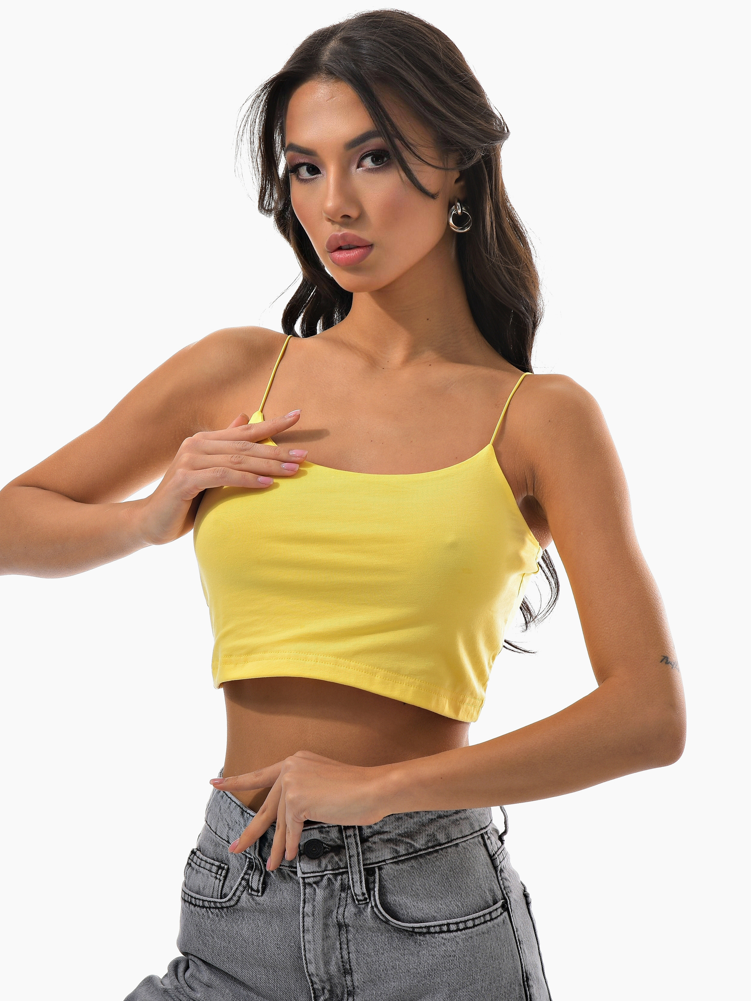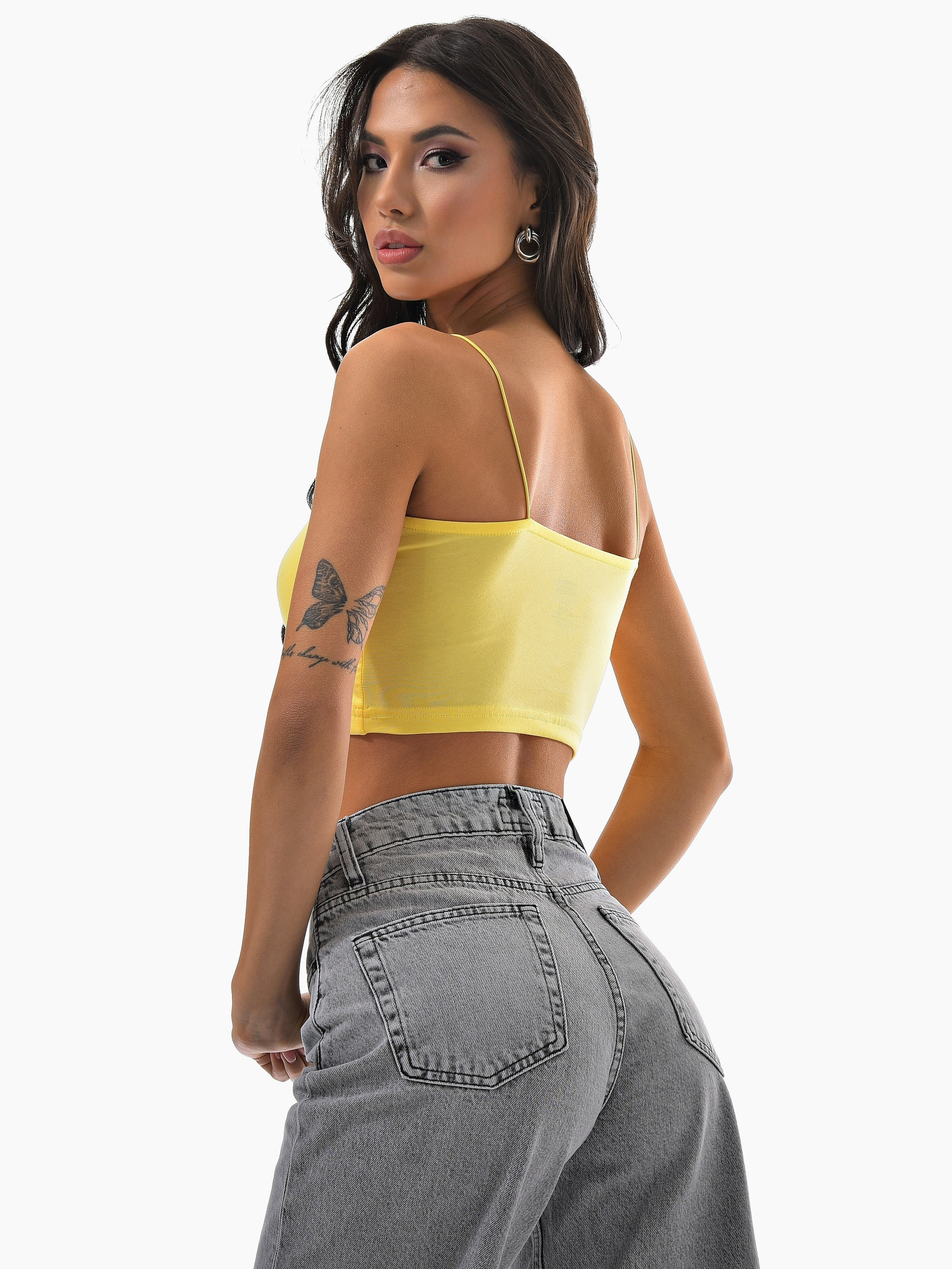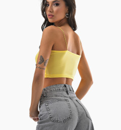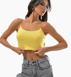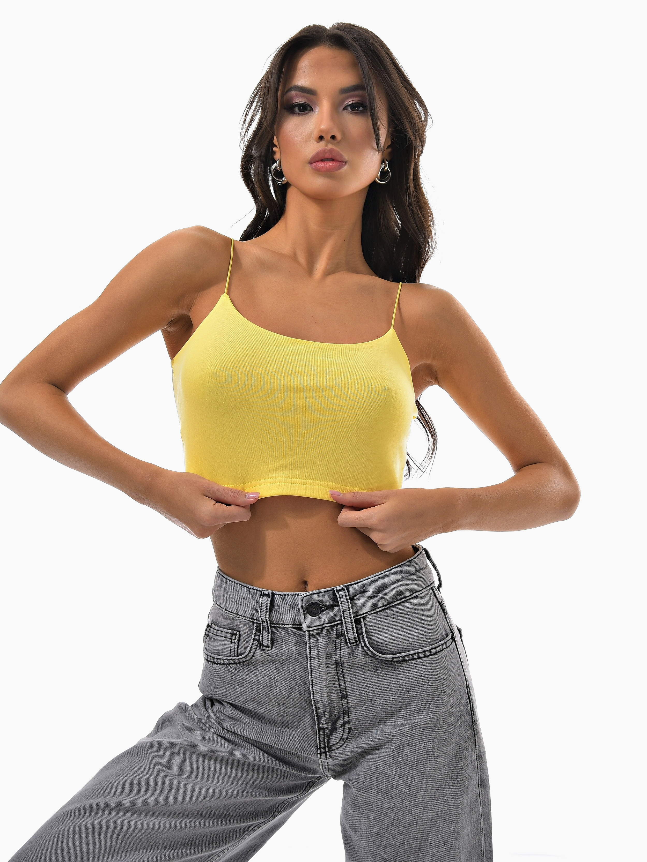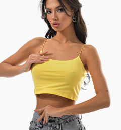 Женский кроп топ Berrak зеленого цвета на тонких бретелях без вкладышей. Двойная ткань. Топ изготовлен из 95% хлопка и 5% эластана.
