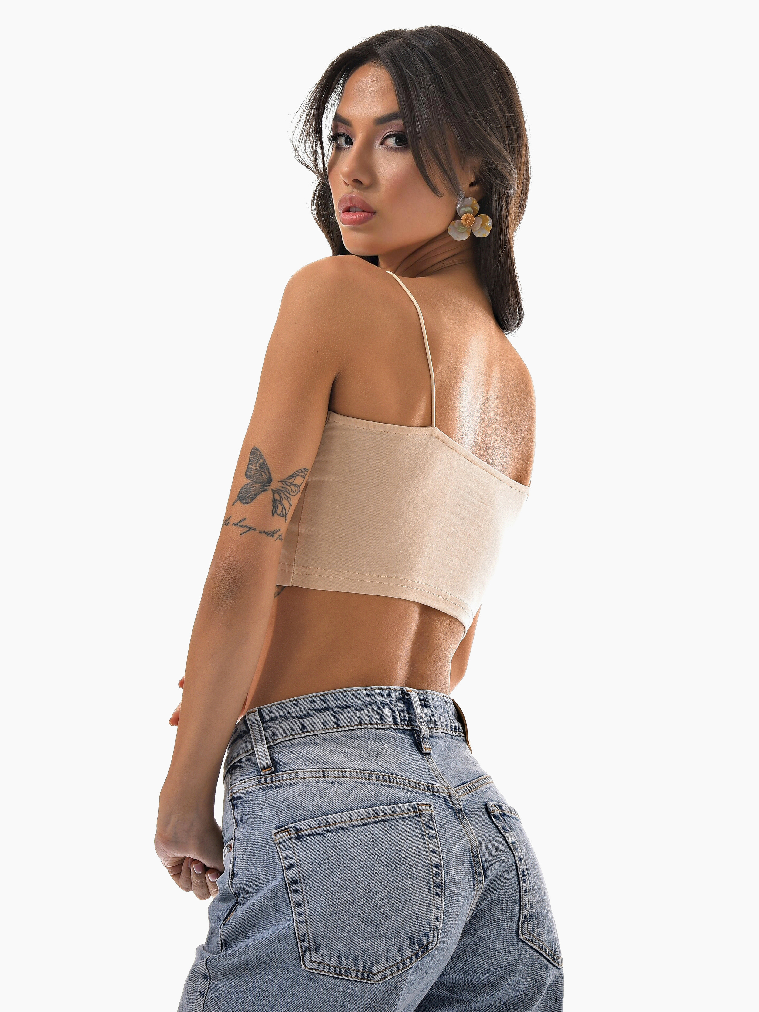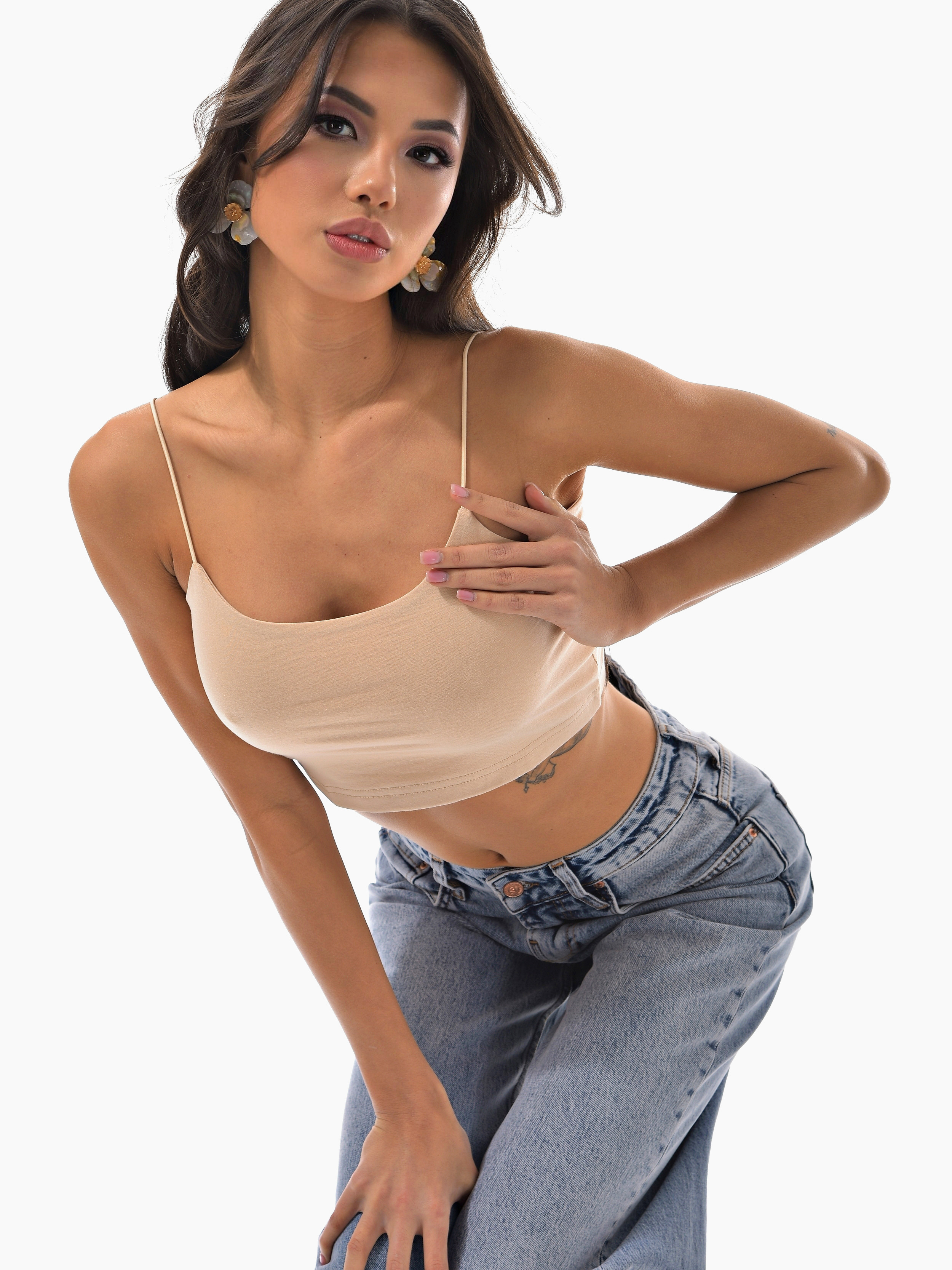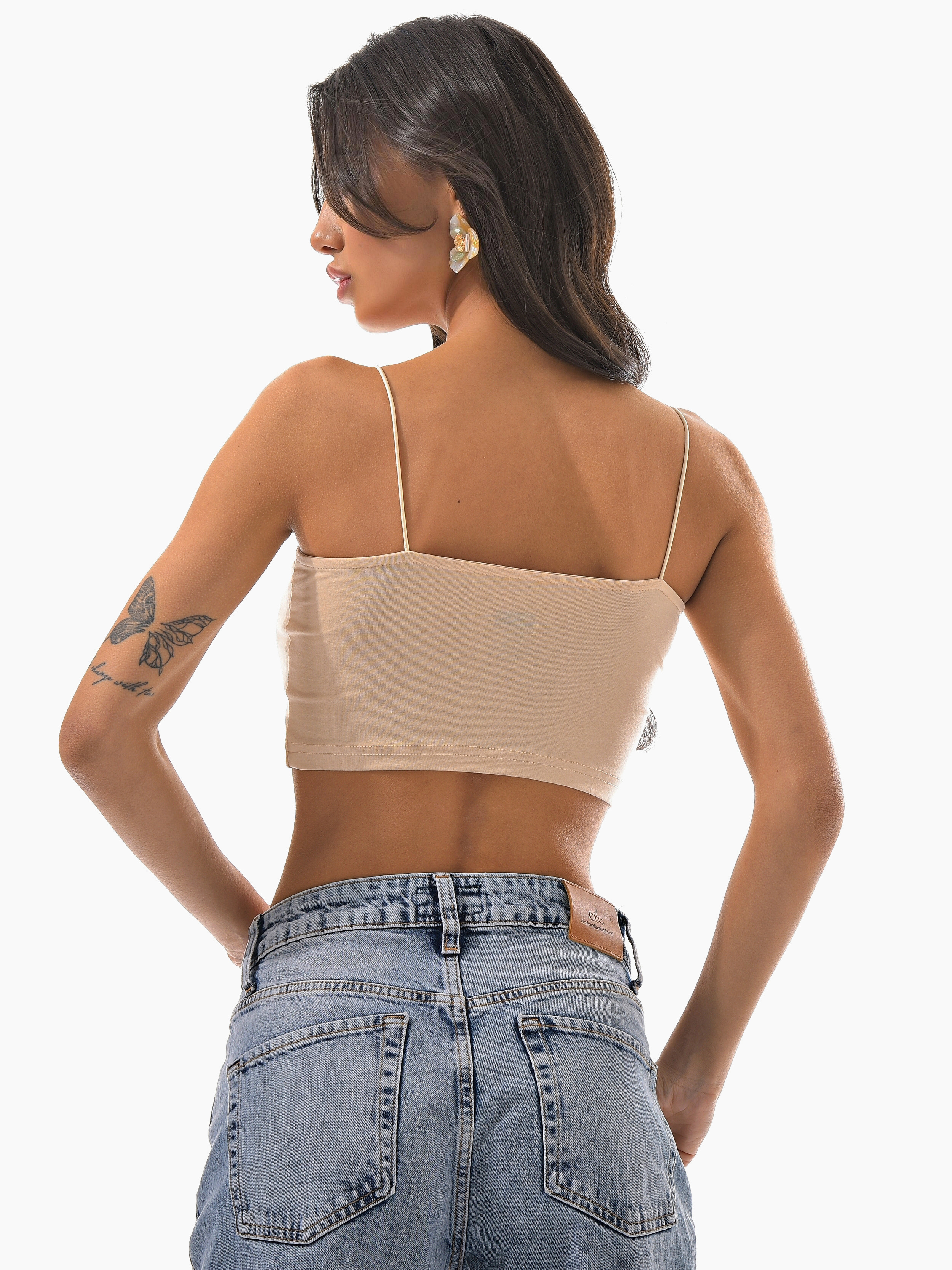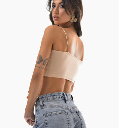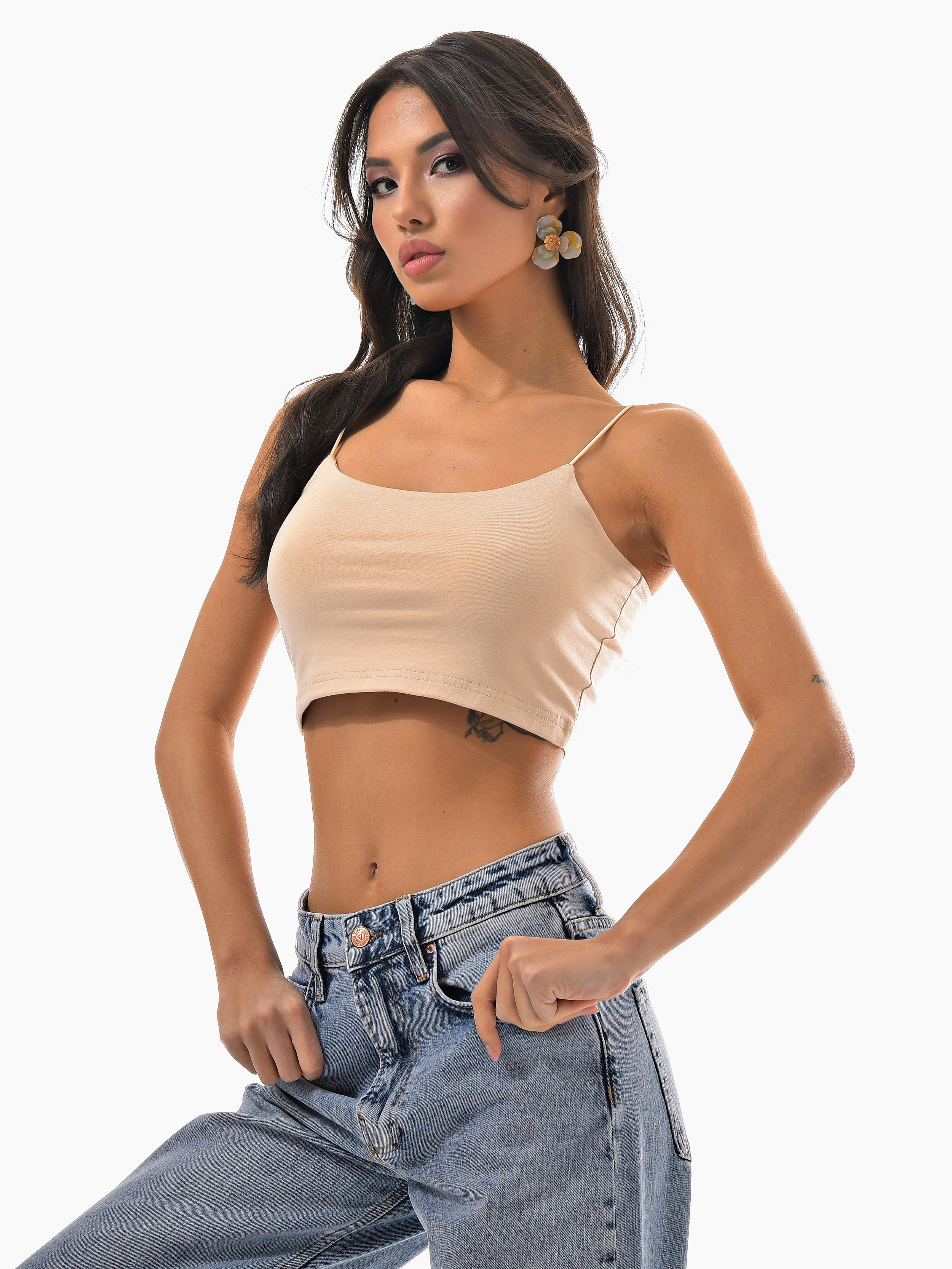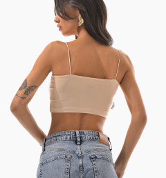 Женский кроп топ Berrak зеленого цвета на тонких бретелях без вкладышей. Двойная ткань. Топ изготовлен из 95% хлопка и 5% эластана.