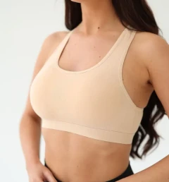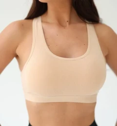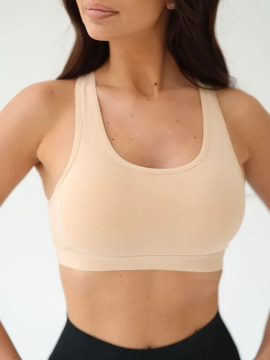 Спортивный топ Berrak бежевый с чашками на широких бретельках. Выполнен из трикотажного хлопка.