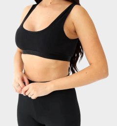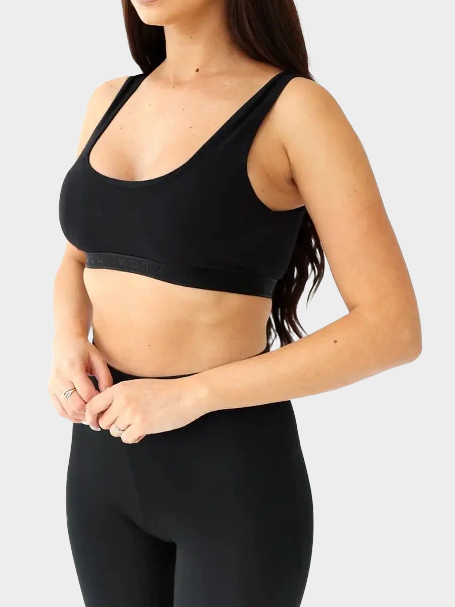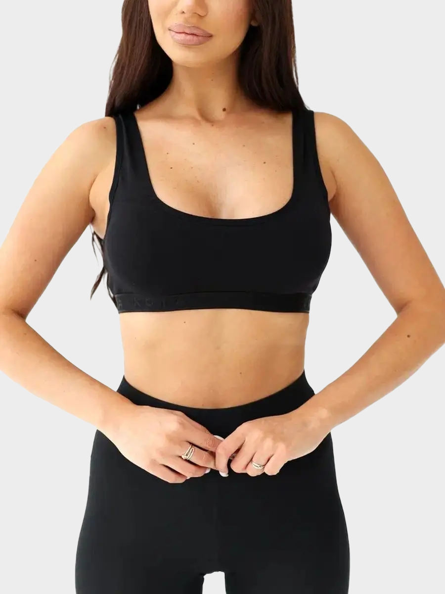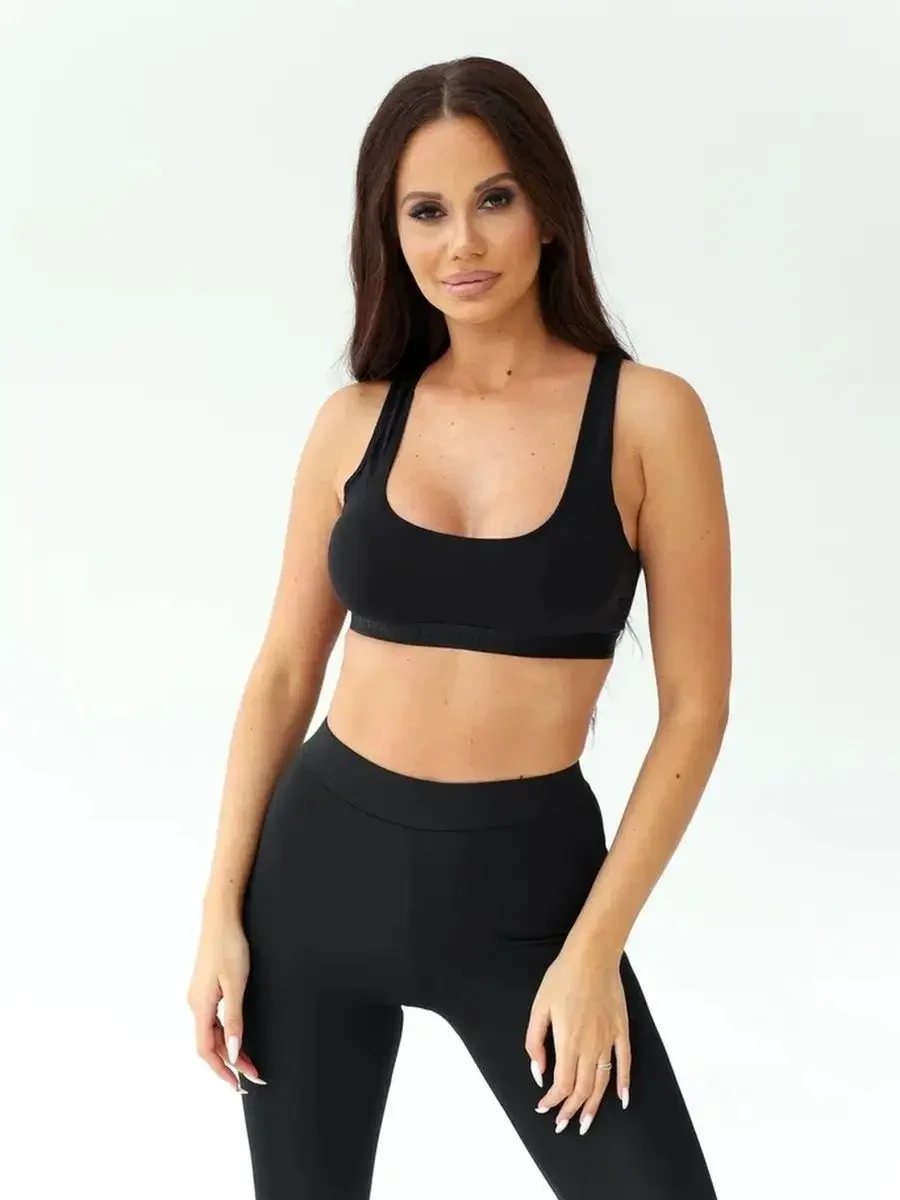 Спортивный топ Kota черного цвета на широких бретелях и с пушап чашечками.