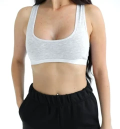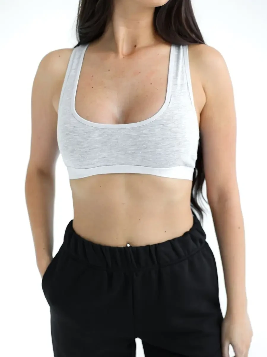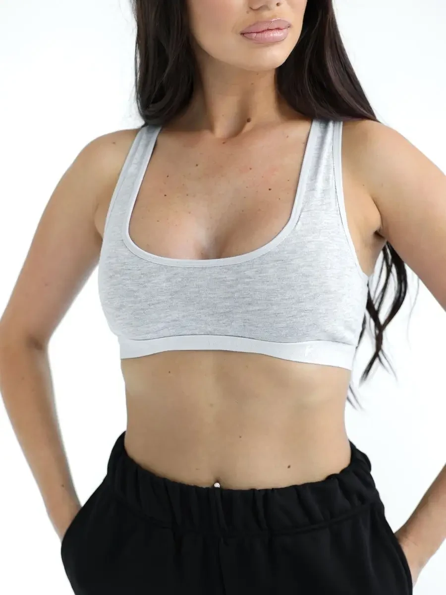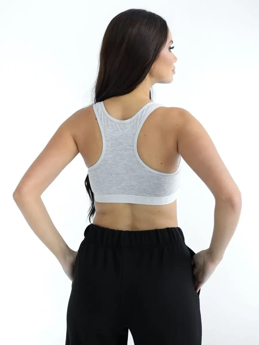 Спортивный топ Kota серого цвета на широких бретелях, с пушап чашечками, спина борцовка.