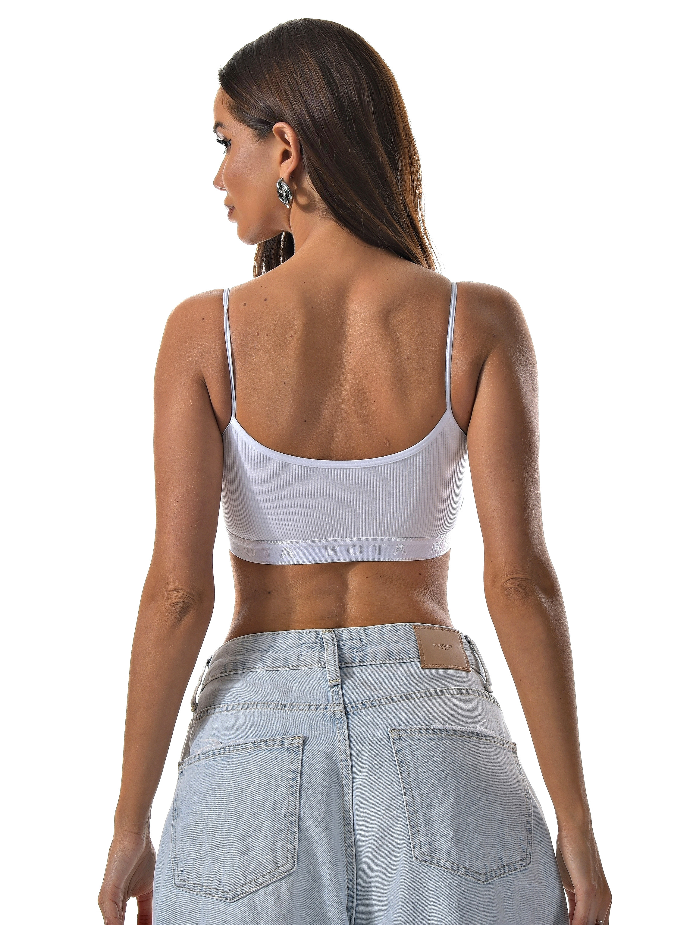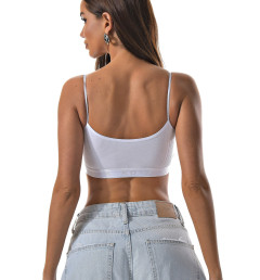 Спортивный укороченный топ Kota белого цвета на тонких бретелях. Ткань в рубчик.