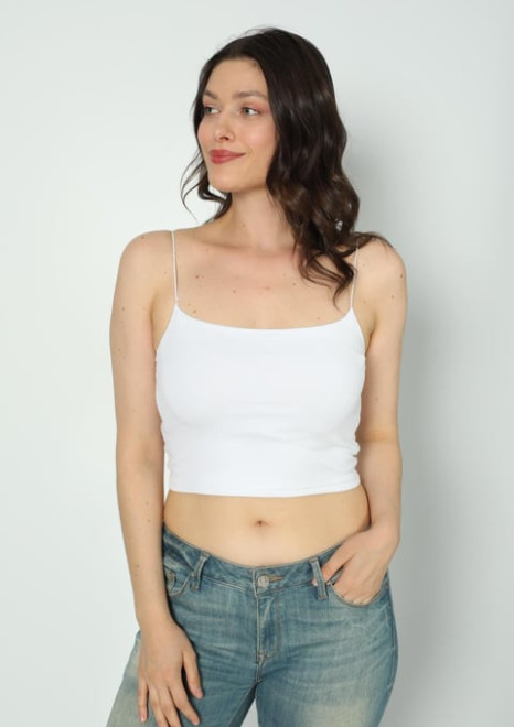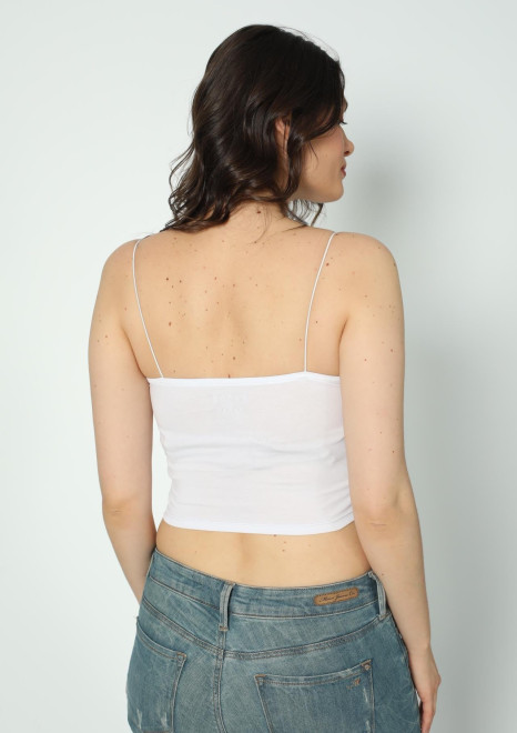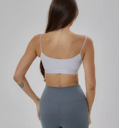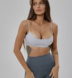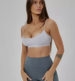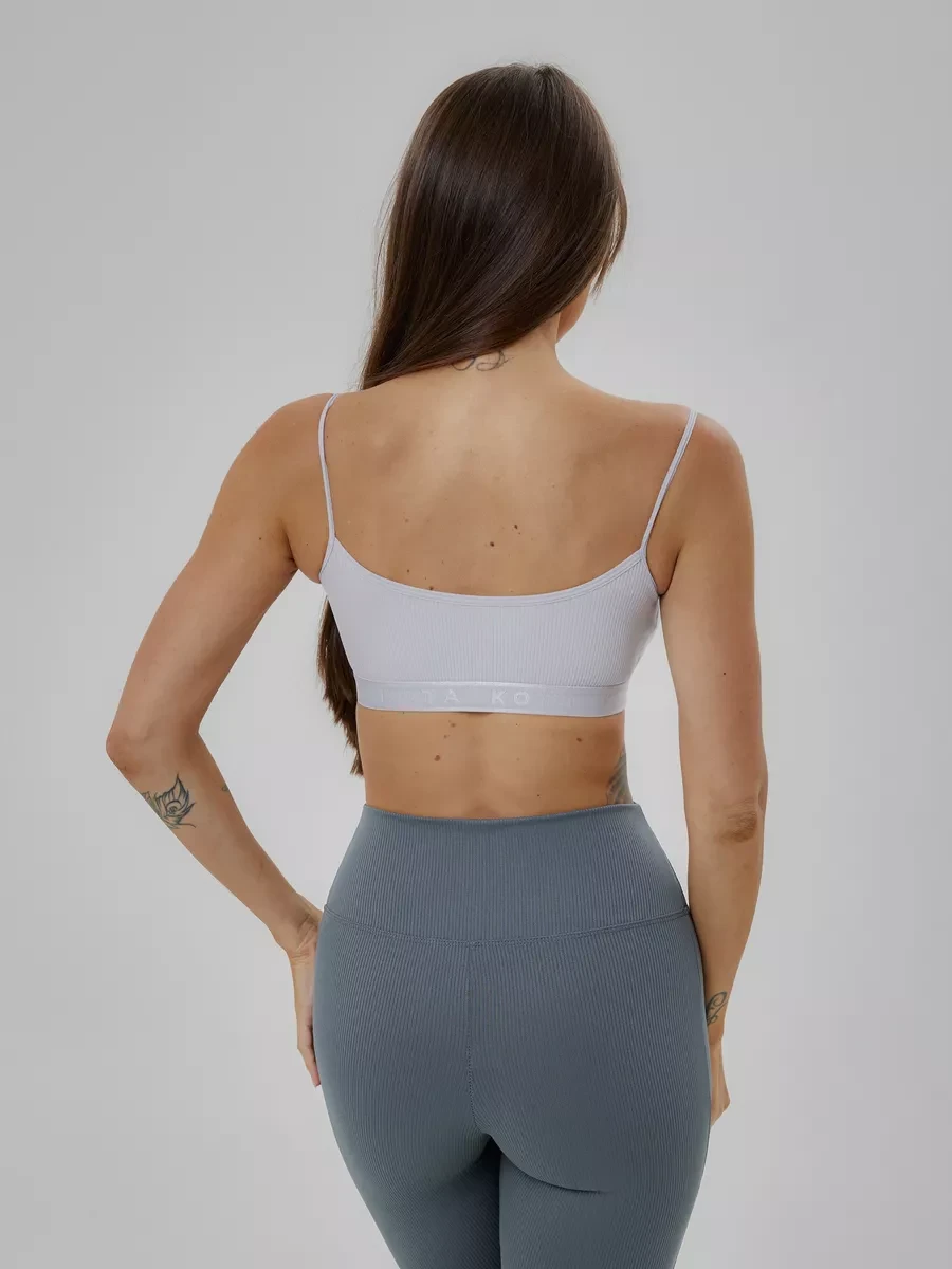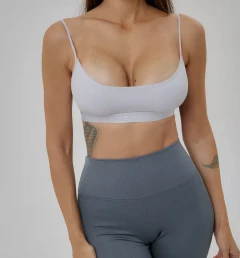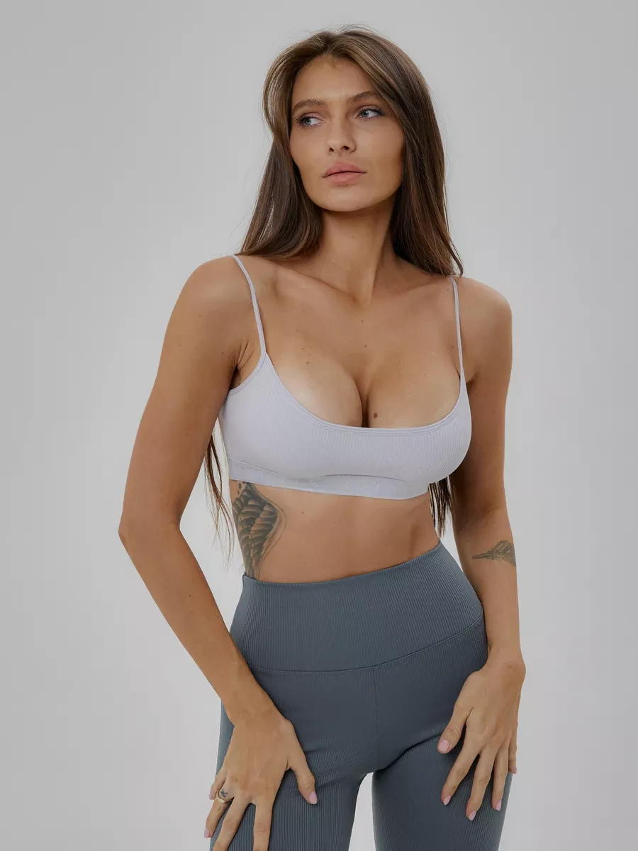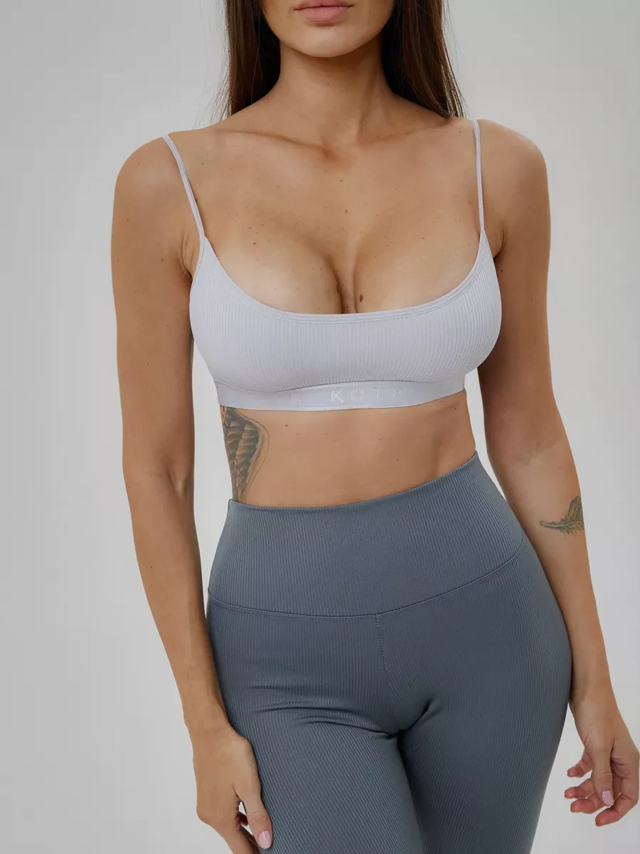 Спортивный укороченный топ Kota серого цвета на тонких бретелях. Ткань в рубчик.