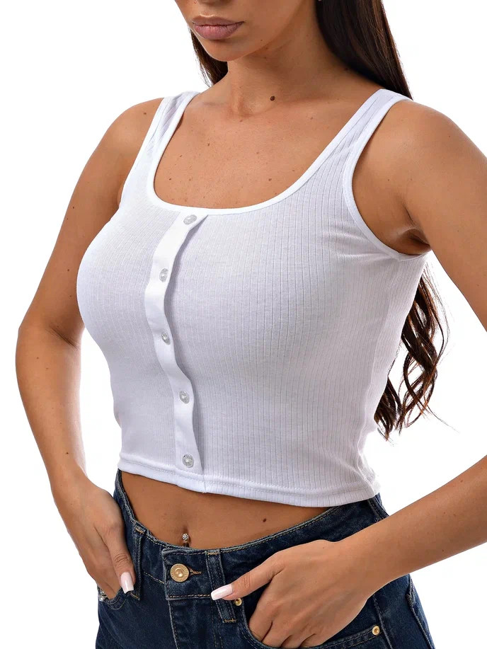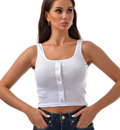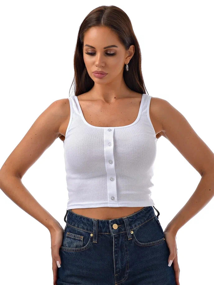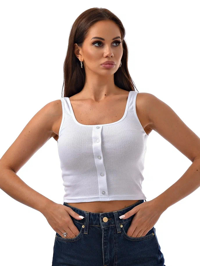 Классический укороченный топ Kota на широких бретелях декорирован пуговицами. Состав из хлопка, что не раздражает кожу и позволяет ей дышать.