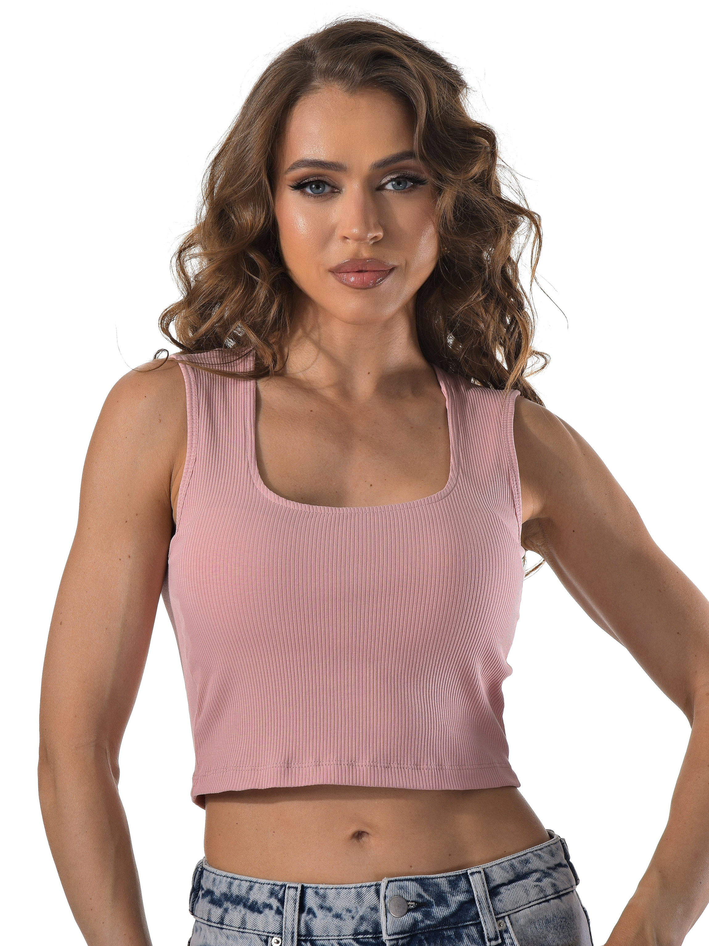 Женский топ Kota из хлопка с круглым вырезом в рубчик.