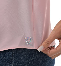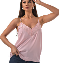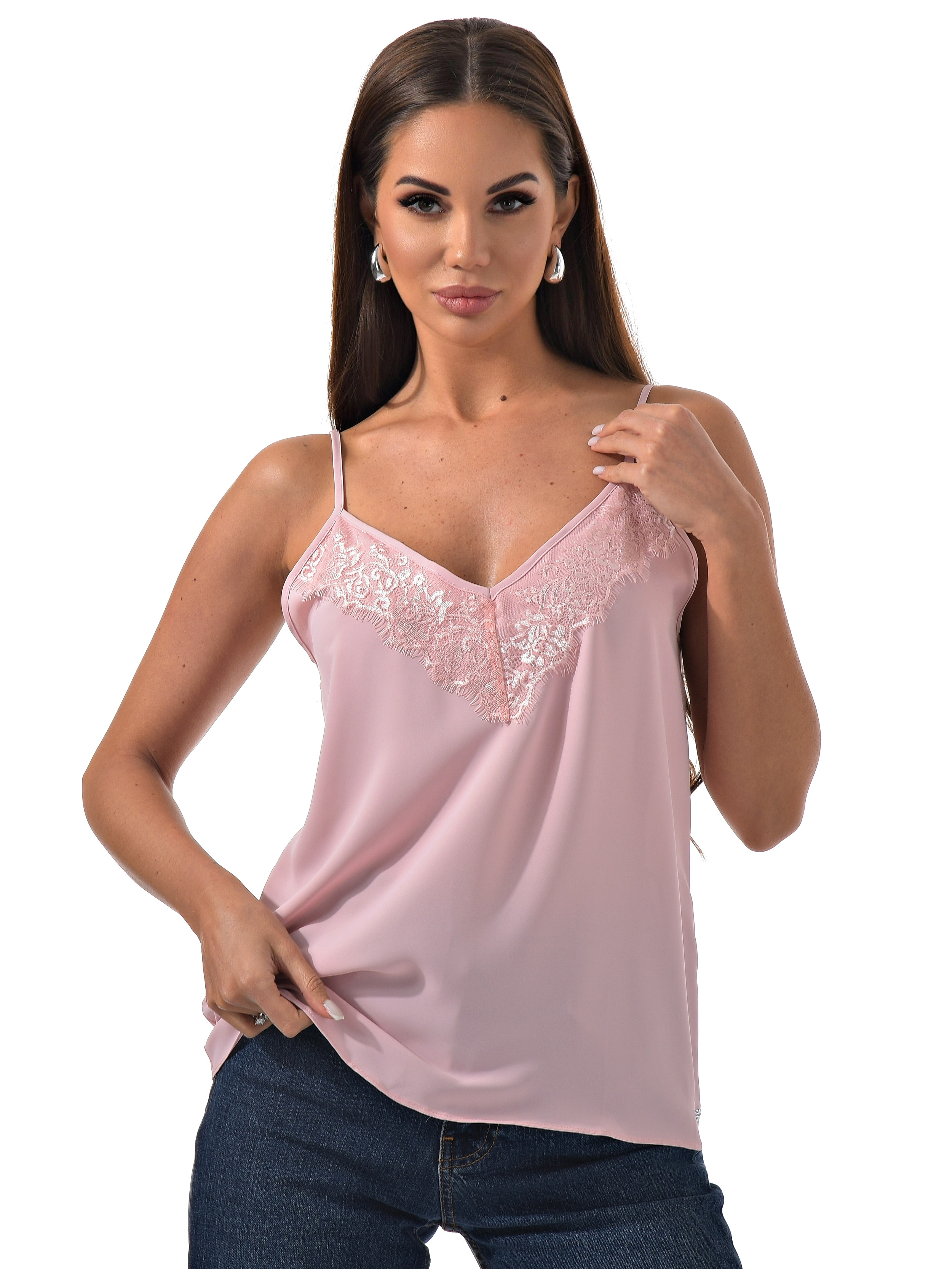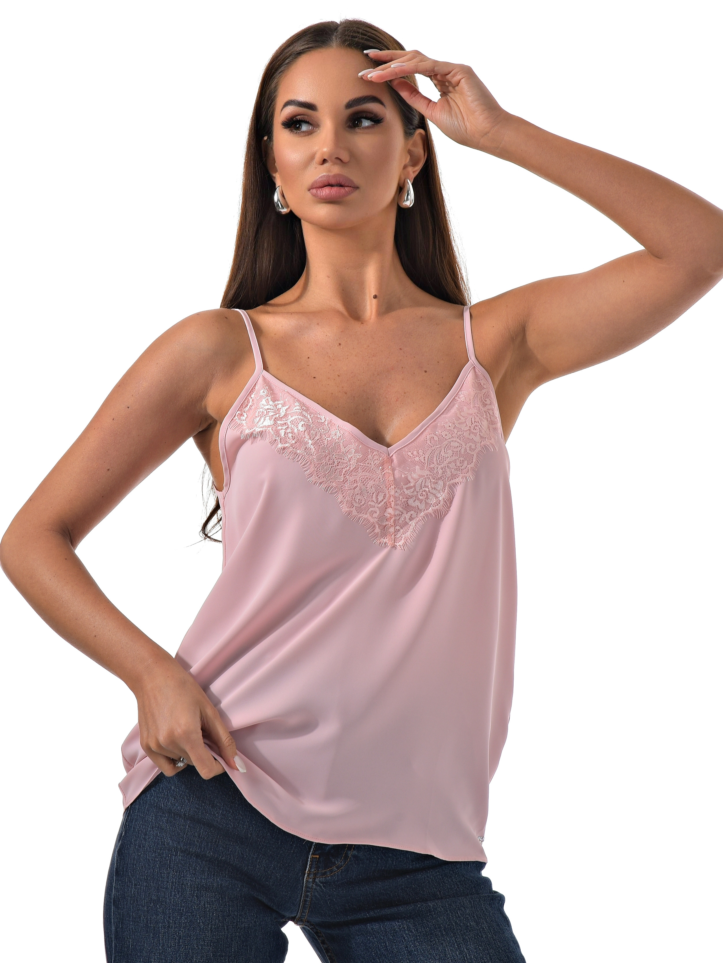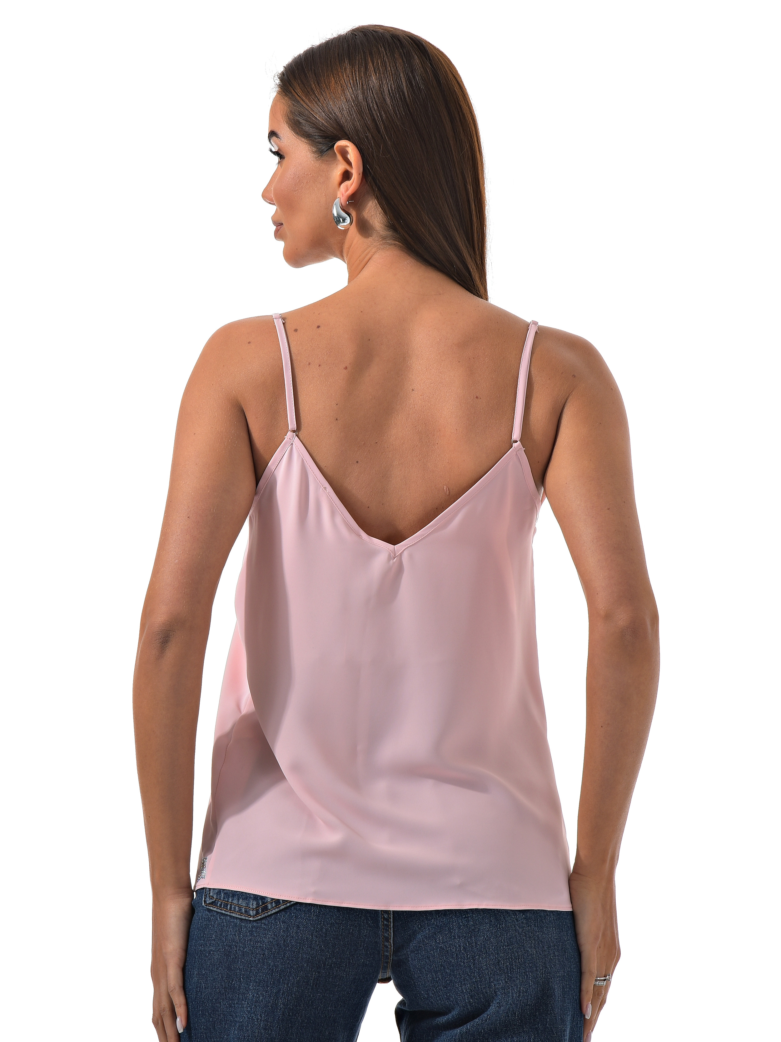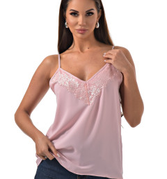 Особенностью этой модели являются изящные стразы, которые украшают топ и придают ему изысканный блеск. Пудровый оттенок топа прекрасно сочетается с любым низом и аксессуарами, позволяя создавать разнообразные образы — от повседневных до вечерних.