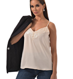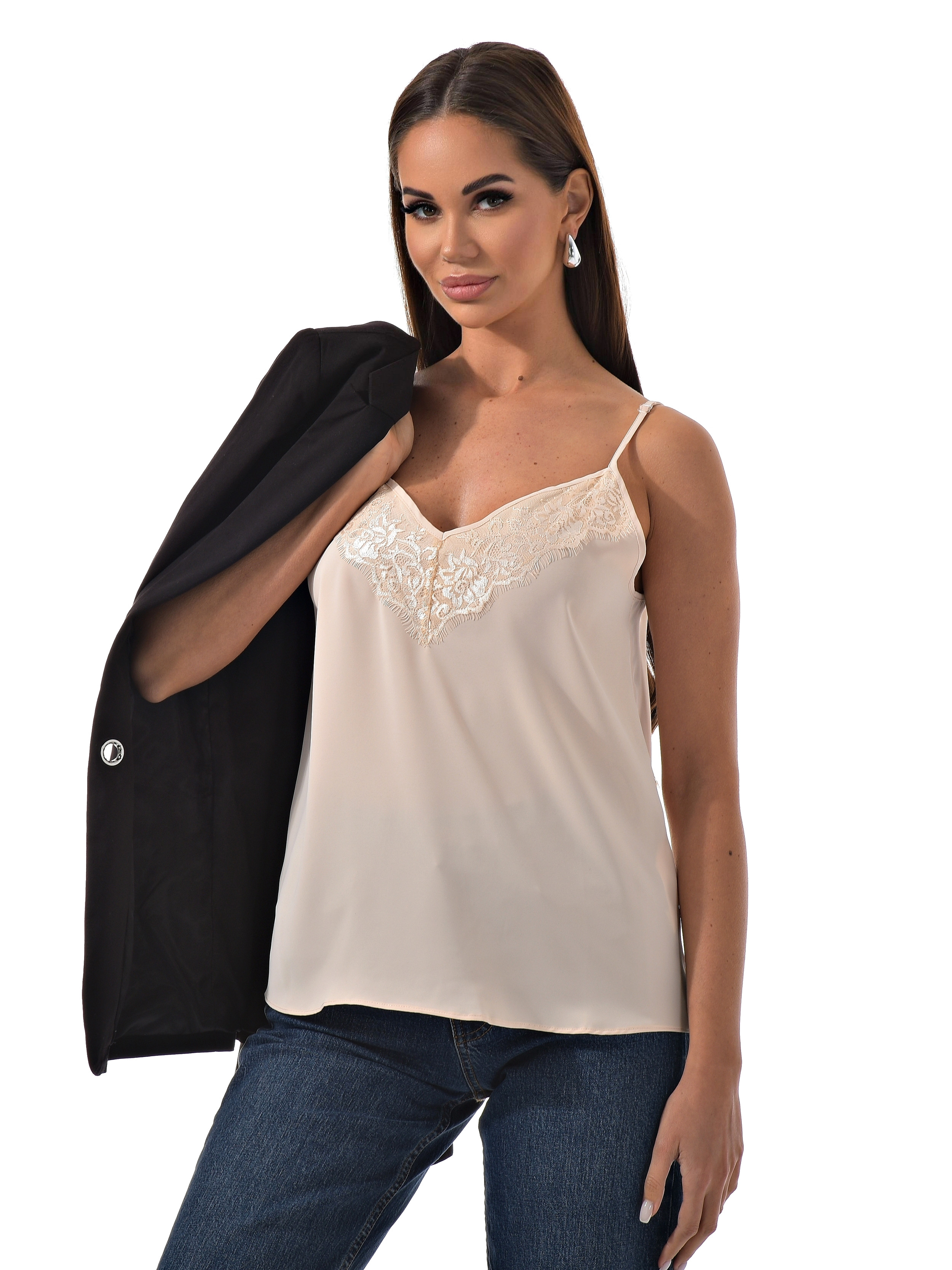 Благодаря качественному полиэстеру, из которого изготовлен топ, он сохраняет форму и цвет даже после многочисленных стирок. Топ с кружевом идеально садится по фигуре, подчёркивая её достоинства.