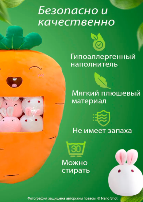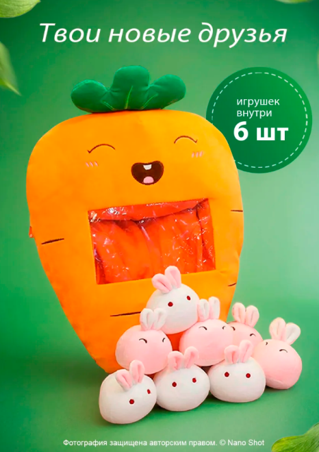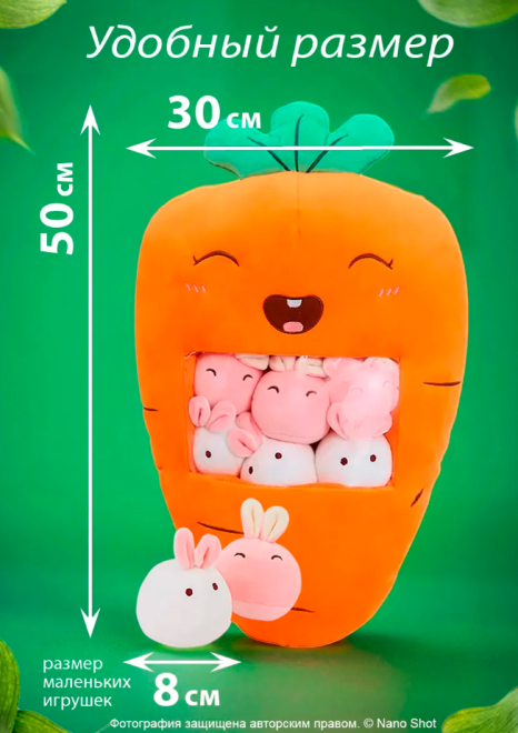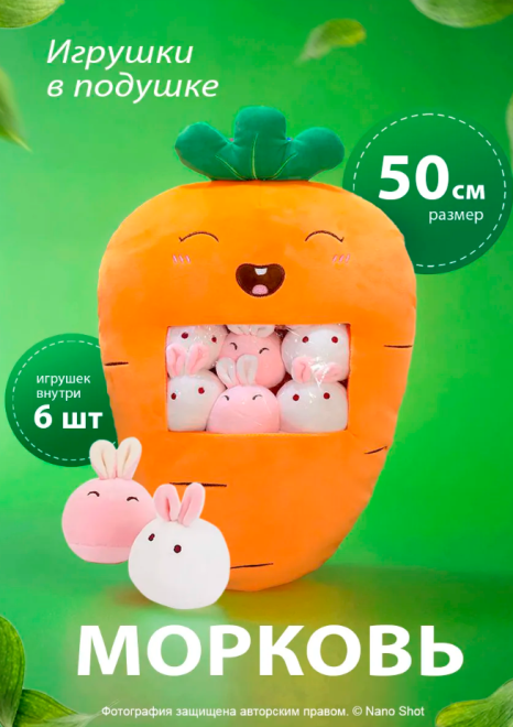 Плюшевая мягкая игрушка сплюшка Морковь, 50 см Carrot_6in1